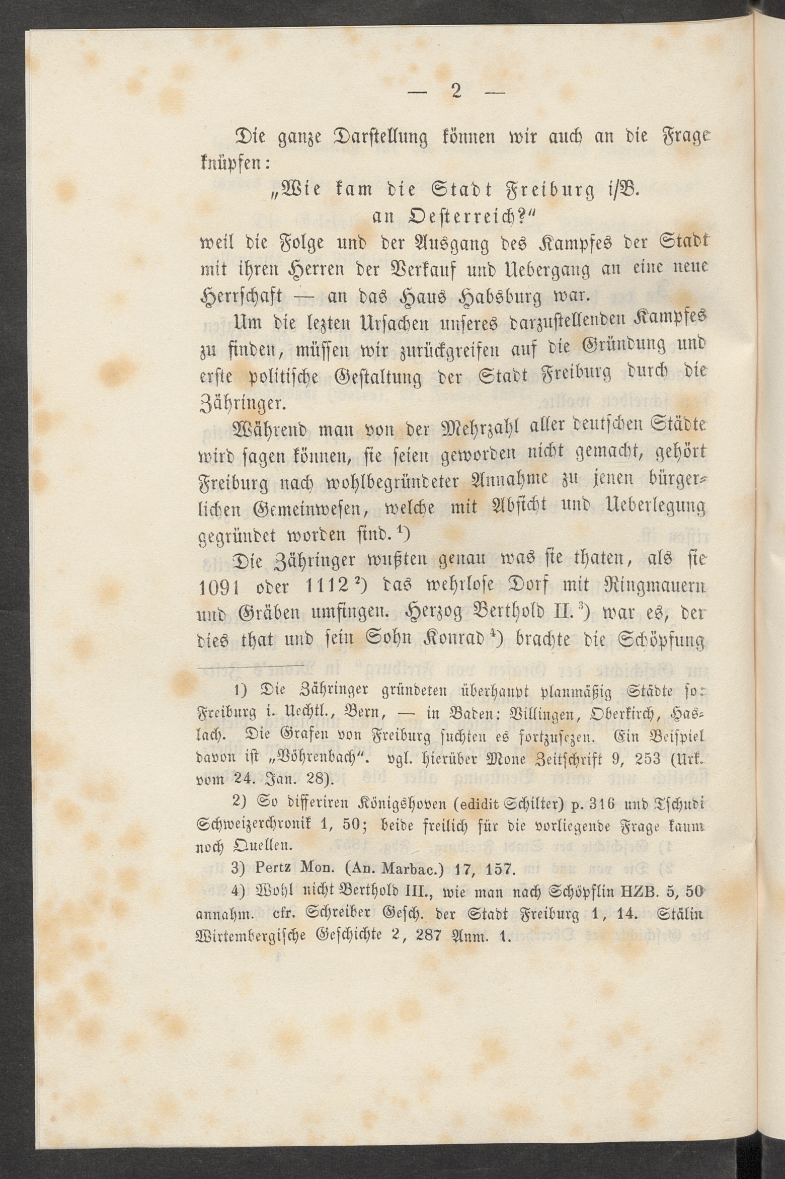 Die Grafen von Freiburg i.B. im Kampfe mit ihrer Stadt oder wie kam die Stadt Freiburg i.B.an das Haus Oesterreich : Eine historische Abhandlung / von Dr. Heinrich Hansjakob