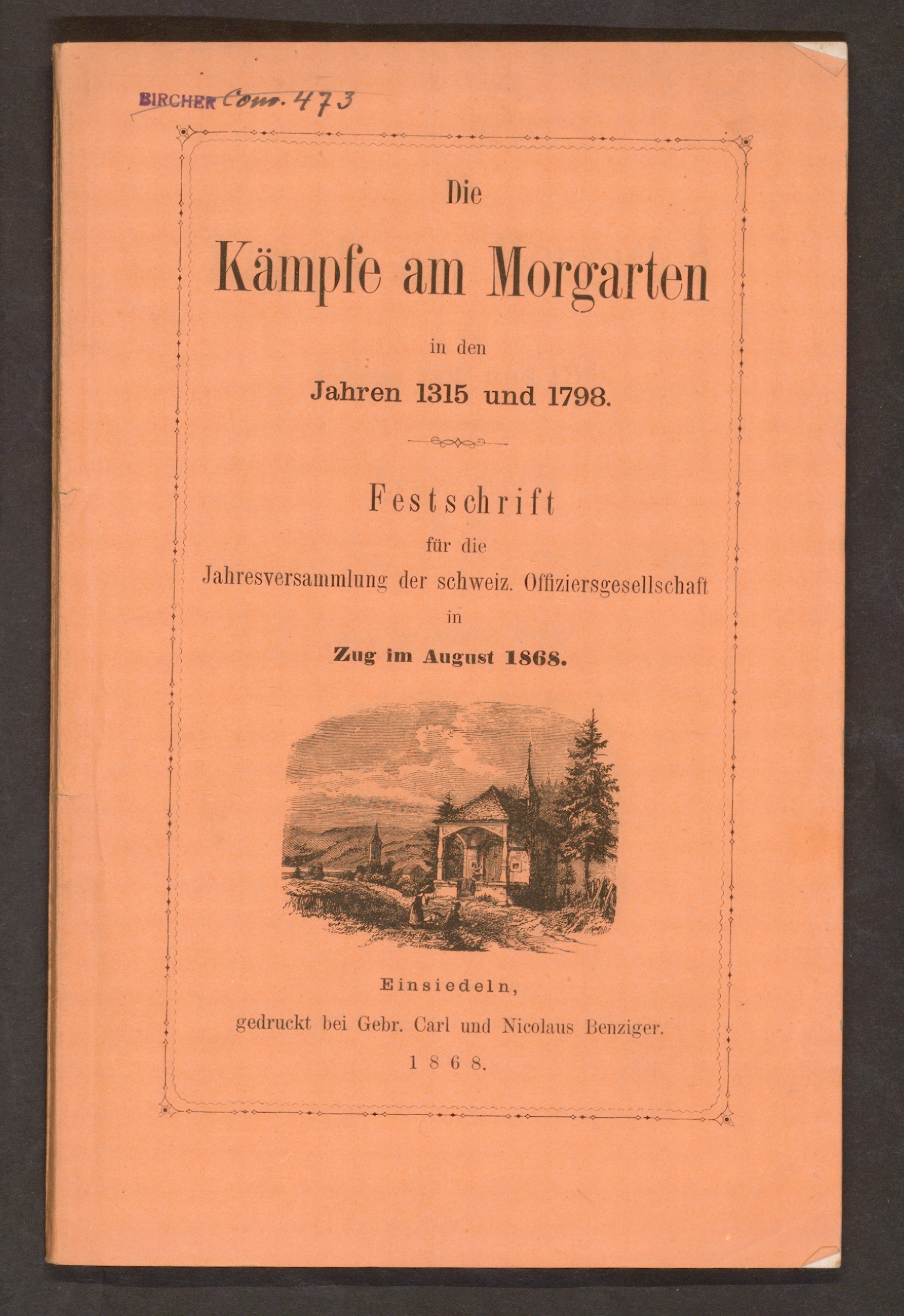Die Kämpfe am Morgarten in den Jahren 1315 und 1798 : Festschrift für die Jahresversammlung der schweiz. Offiziersgesellschaft in Zug im August 1868 / Karl von Elgger