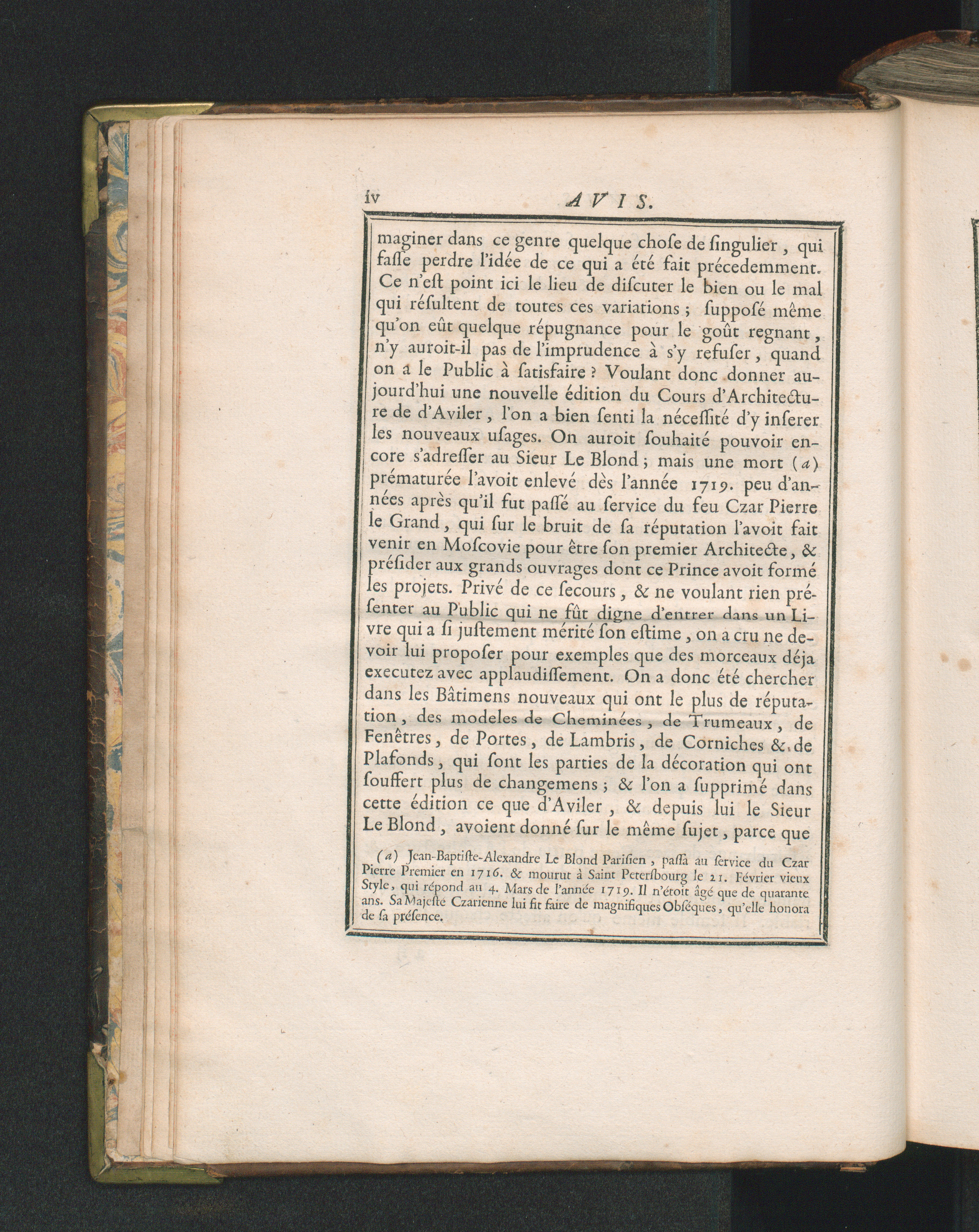 Cours d'architecture : qui comprend les Ordres de [Jacques Barozzio, dit Le] Vignole, avec des commentaires, les figures & les descriptions de ses plus beaux bâtimens, & de ceux de Michel-Ange, des instructions et des préceptes & plusieurs nouveaux desseins concernans la distribution & la décoration, la matière & la construction des édifices, la maçonnerie, la charpenterie, la couverture, la serrurerie, la menuiserie, le jardinage, & généralement tout ce qui regarde l'art de bastir / par C. A. [i.e. Augustin-Charles] d'Aviler