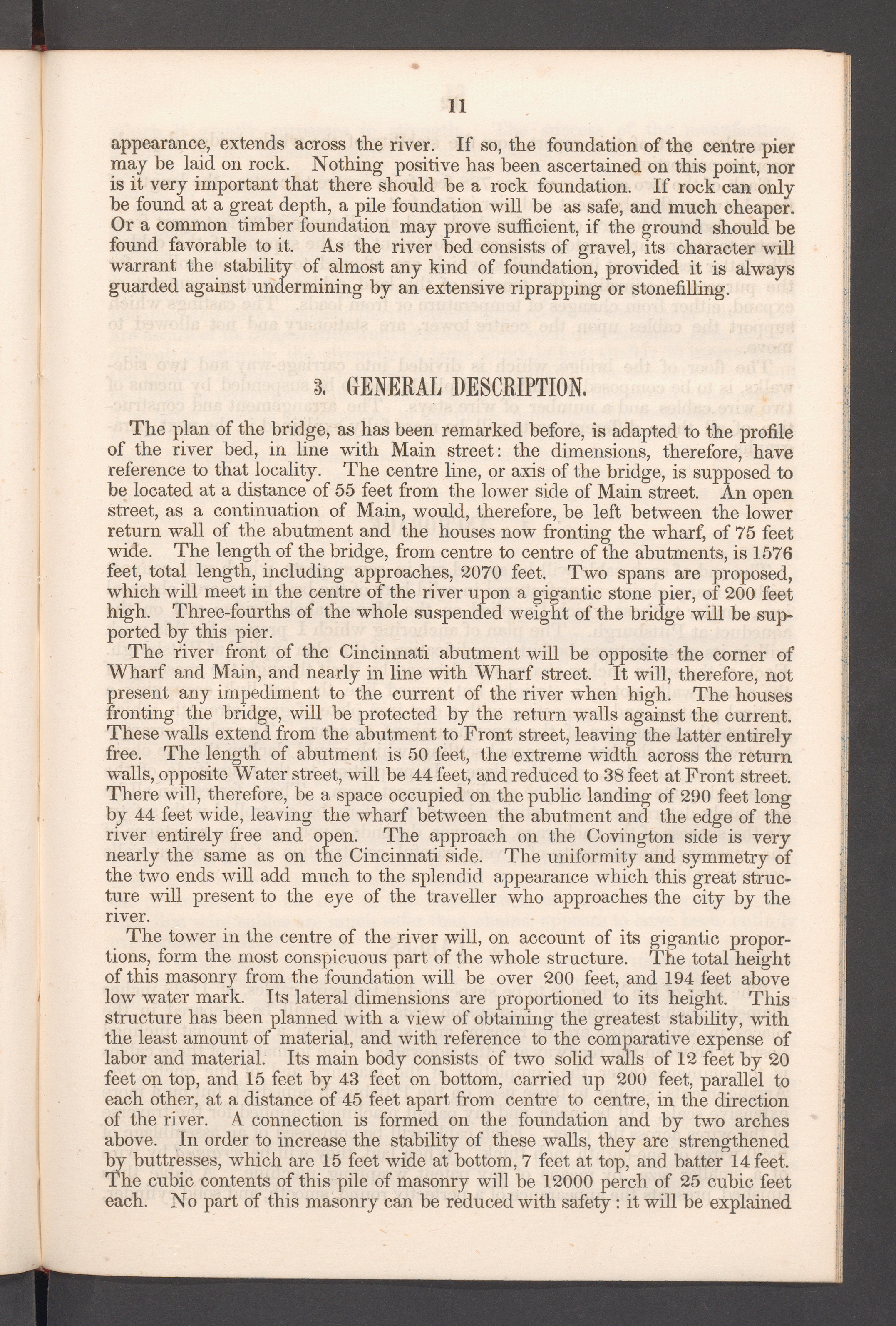 Report and plan for a wire suspension bridge proposed to be erected over the Ohio river at Cincinnati / by John A. Roebling