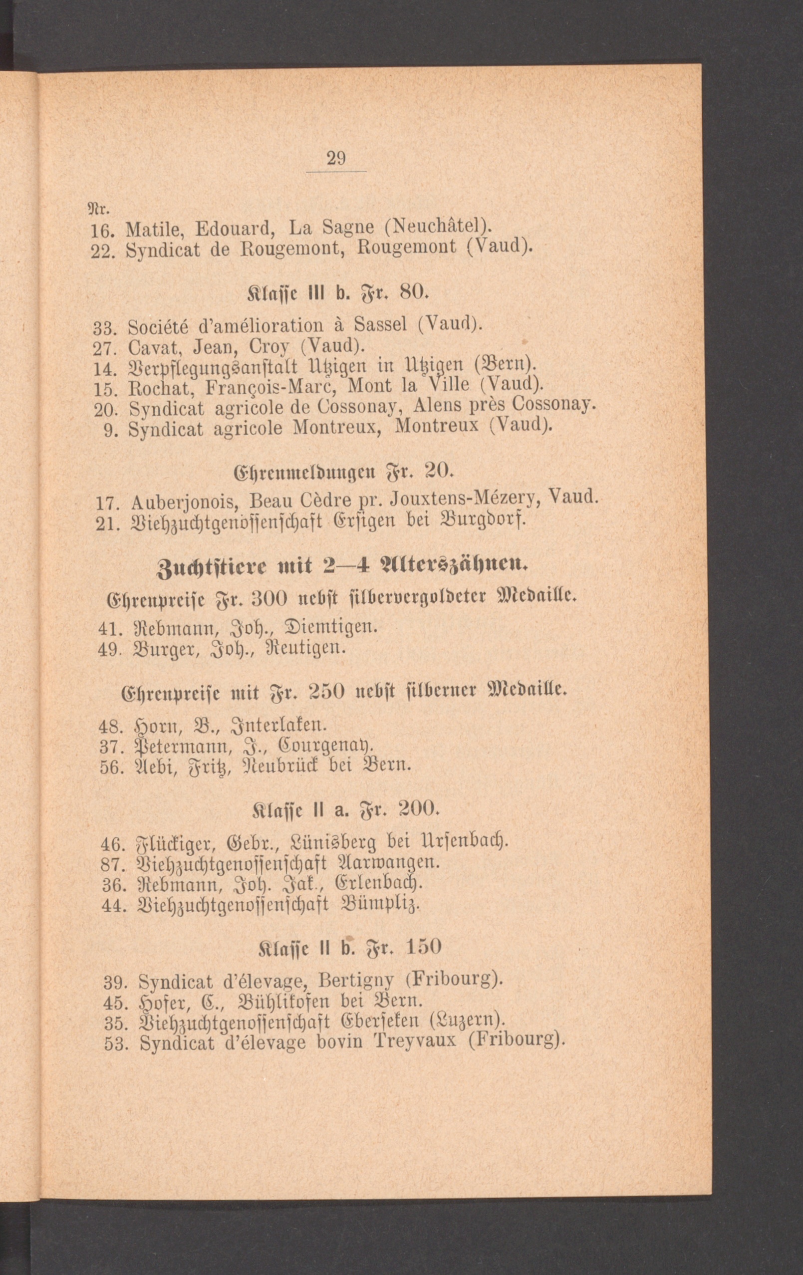 Prämirungs-Liste : VI. Schweizerische Ausstellung für Landwirthschaft, Forstwirthschaft u. Fischerei (VI. Schweizerische landwirthschaftliche Ausstellung) in Bern, vom 13.-22. September 1895