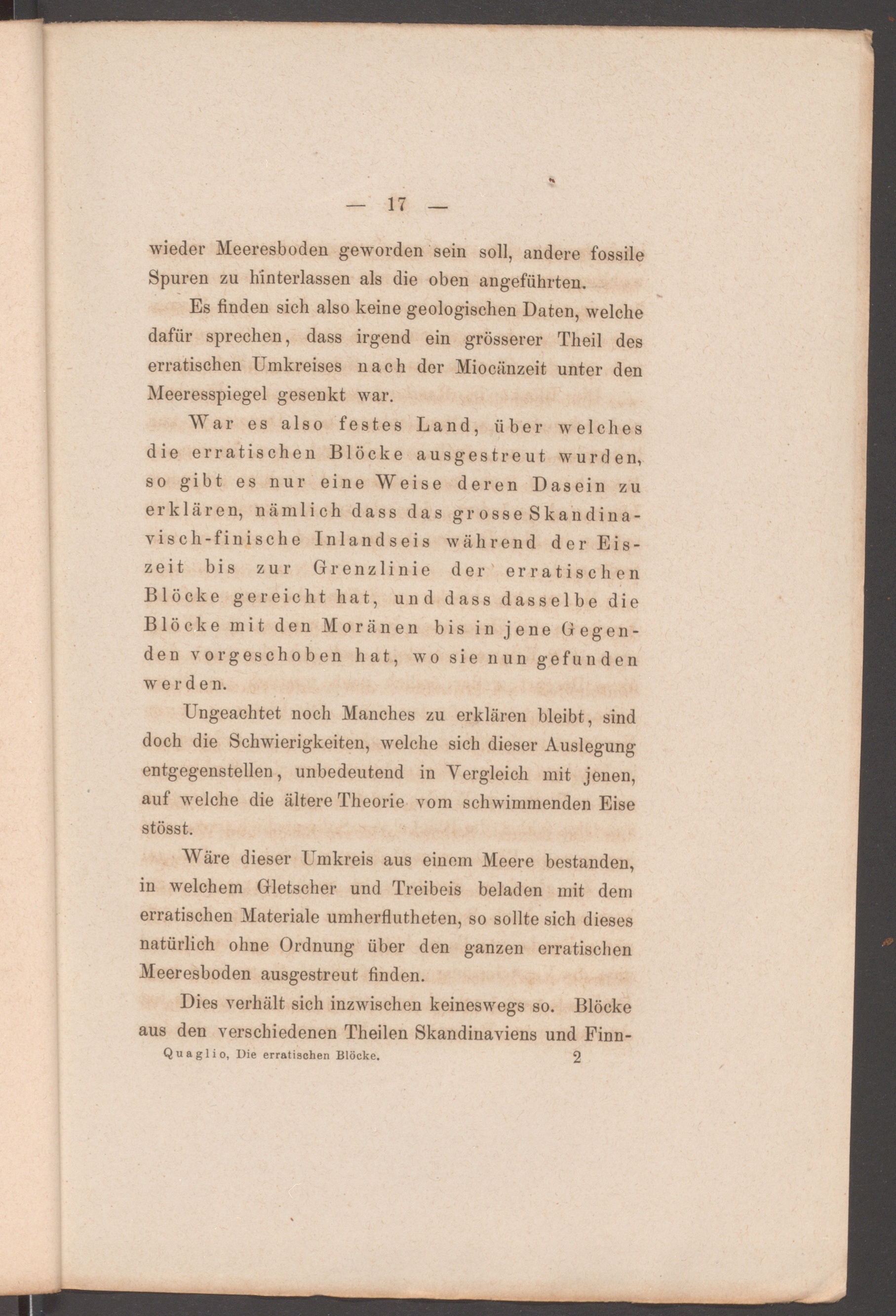 Die erratischen Blöcke und die Eiszeit : nach Professor Otto Torell's Theorie ; mit einer Karte der nördlichen Eisfluth in Europa und Amerika / von Julius Quaglio