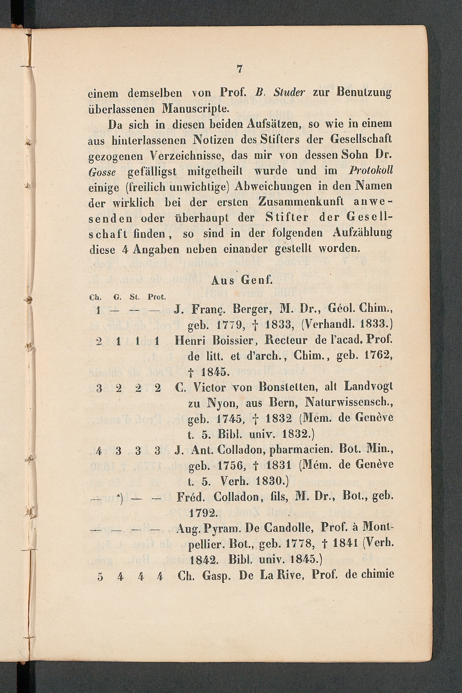 Die wichtigsten Momente aus der Geschichte der drei ersten Jahrzehnde der Schweizerischen Naturforschenden Gesellschaft / [Johann Jakob Siegfried] = Coup-d'oeil historique sur les 32 premières années d'existence de la Société Helvétique des Sciences Naturelles