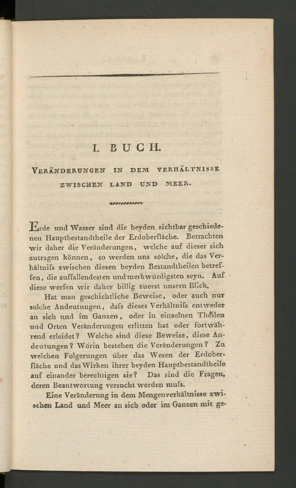 I. Buch. Veränderungen in dem Verhältnisse zwischen Land und Meer.