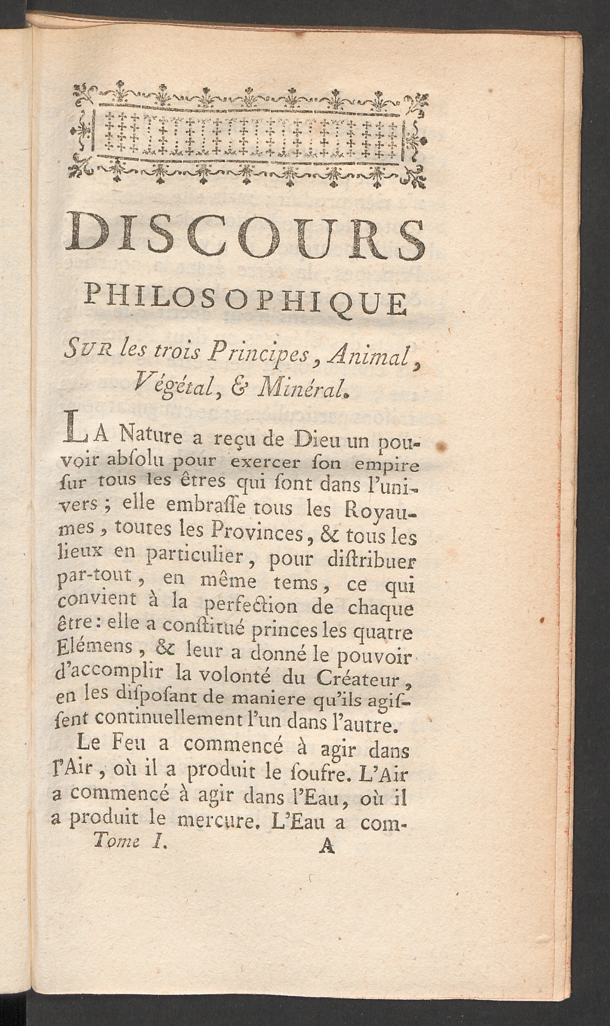 Discours philosophique sur les trois principes, animal, végétal, & minéral.