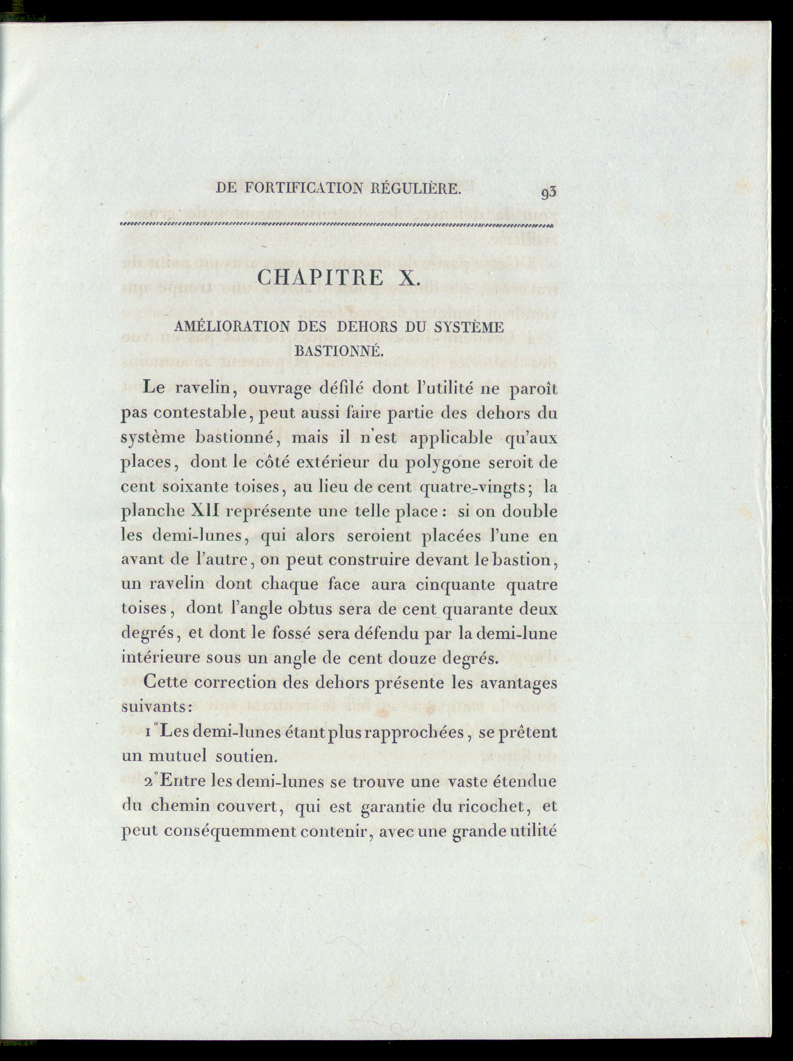 L' art de la fortification : appliqué a la défense des places de guerre d'un diamètre de six cents toises et au-dessus, par lequel on donne les moyens d'augmenter considérablement la force de résistance et de diminuer les frais de construction des grandes forteresses... / par le prince Ernest d'Arenberg