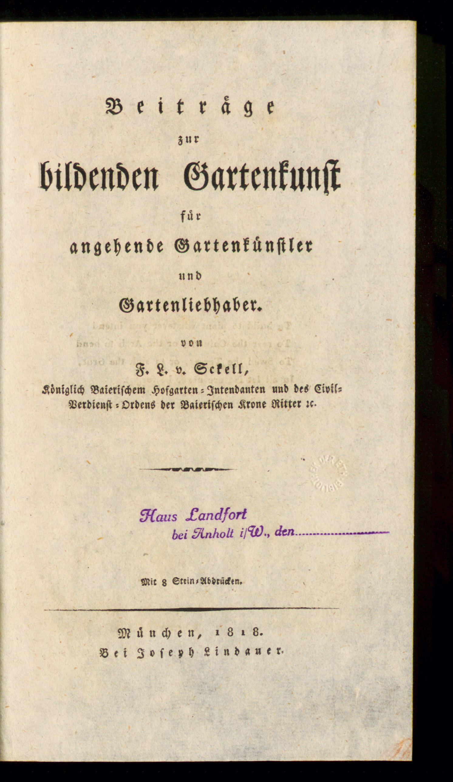 Beiträge zur bildenden Gartenkunst für angehende Gartenkünstler und Gartenliebhaber / von F.L. v. Sckell