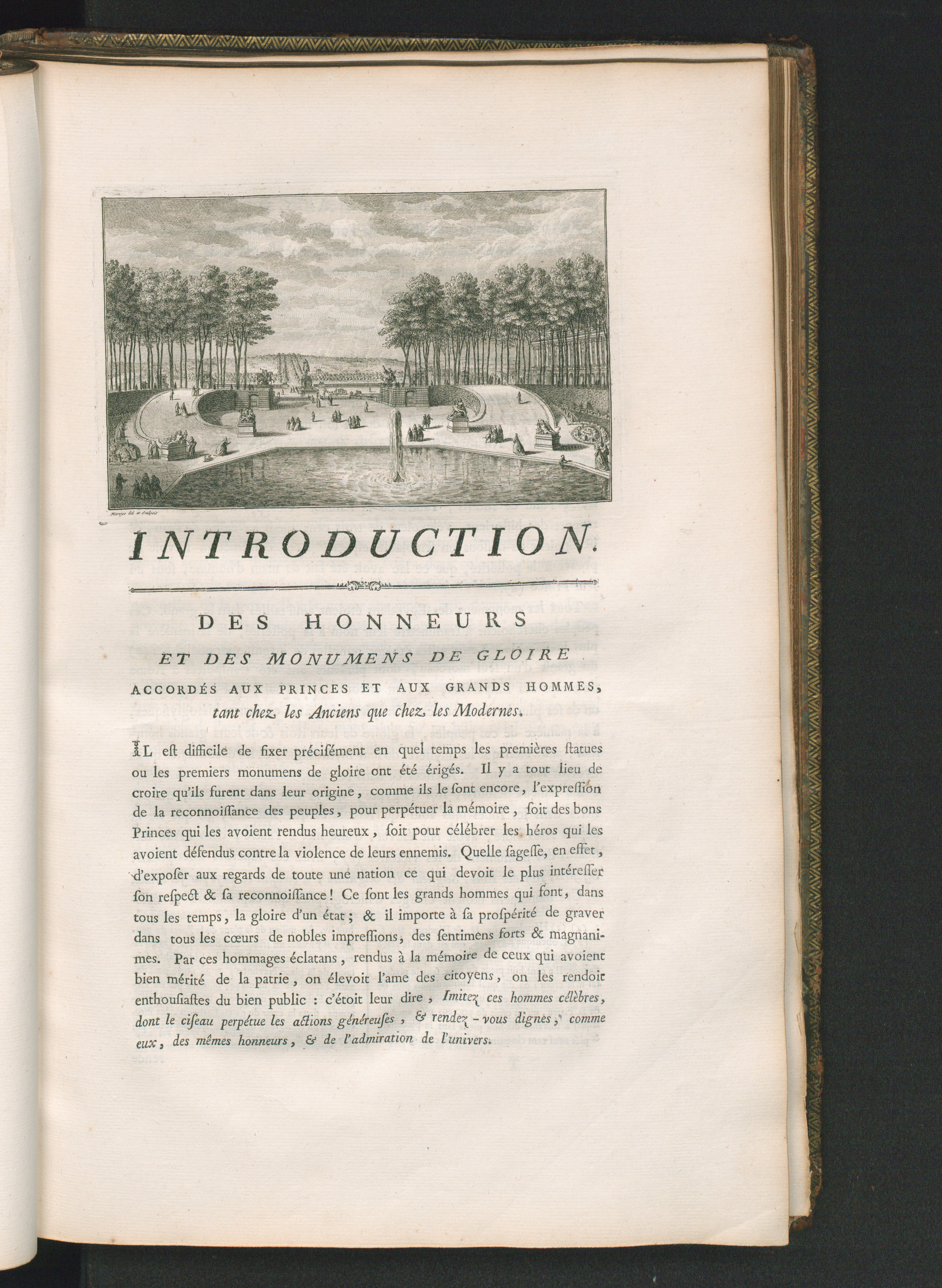 Introduction. Des honneurs et des monumens de gloire accordés aux princes et aux grands hommes, tant chez les anciens que chez les modernes.
