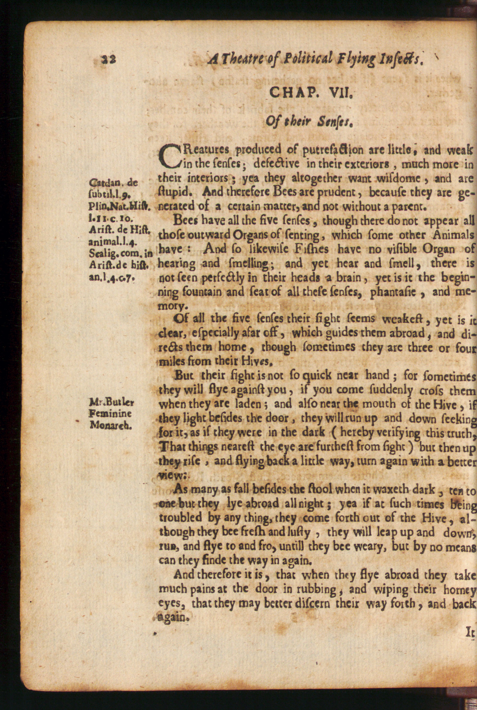 A theatre of politicall flying-insects : wherein especially the nature, the worth, the work, the wonder, and the manner of right-ordering of the bee, is discovered and described : together with discourses, historical, and observations physical concerning them : and in a second part are annexed meditations, and observations theological and moral, in three centuries upon that subject / by Samuel Purchas