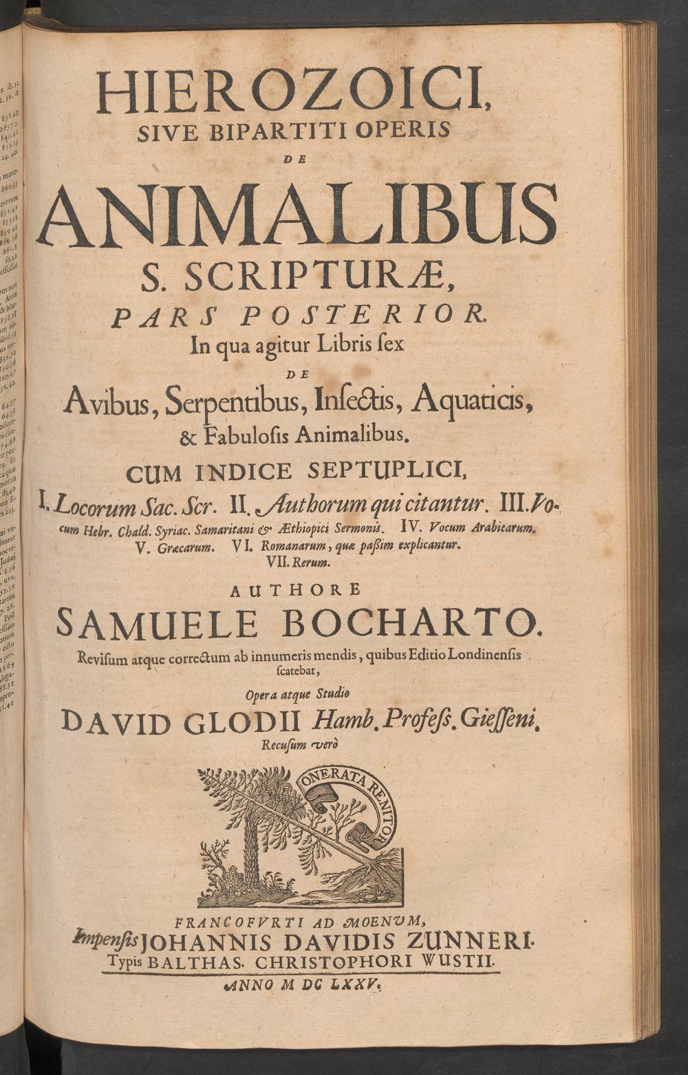 Hierozoicon sive bipertitum opus de animalibus S. Scripturae ... / authore Samuele Bocharto