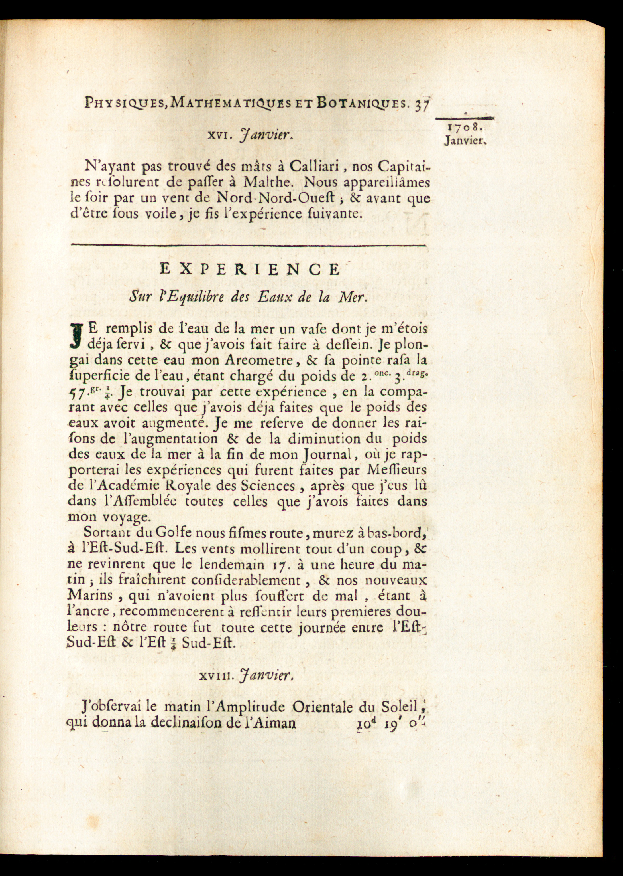 Expérience sur l'équilibre des eaux de la mer.
