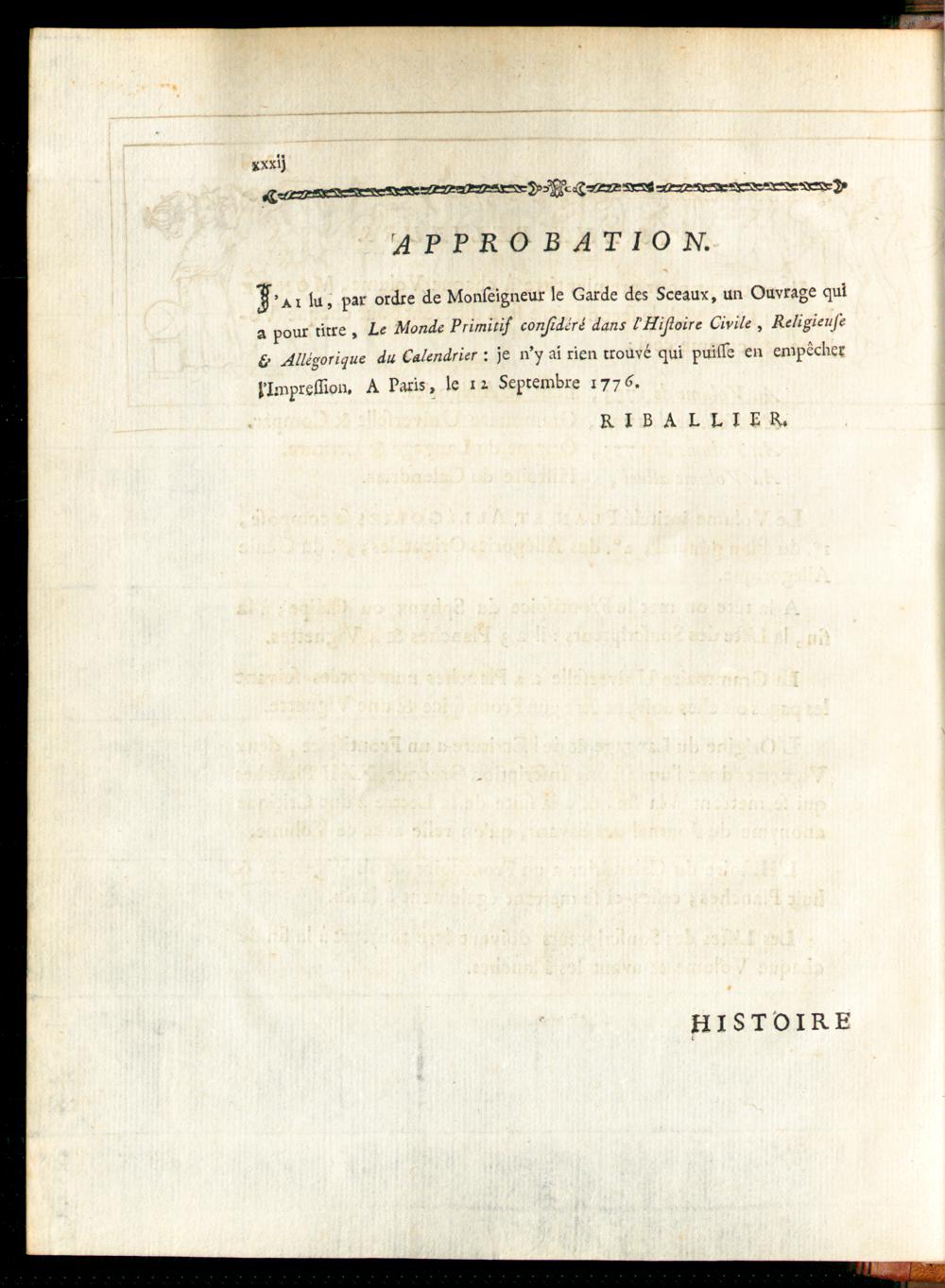 Monde primitif analysé et comparé avec le monde moderne considéré dans l'histoire civile, réligieuse et allégorique du calendrier ou almanach / par M. Court de Gébelin