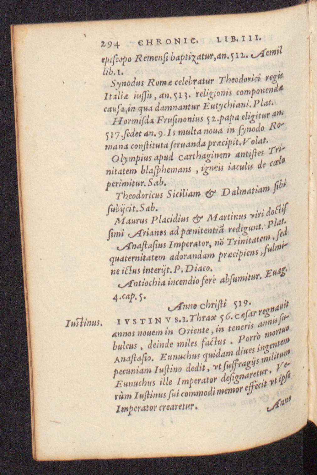 Ioan. Carionis mathematici chronicorum libri tres : appendix eorum quae a sine Carionis ad haec usque tempora contigere. Catalogus pontificum, caesarum, regum & ducum venetorum, cum indice copiosissimo