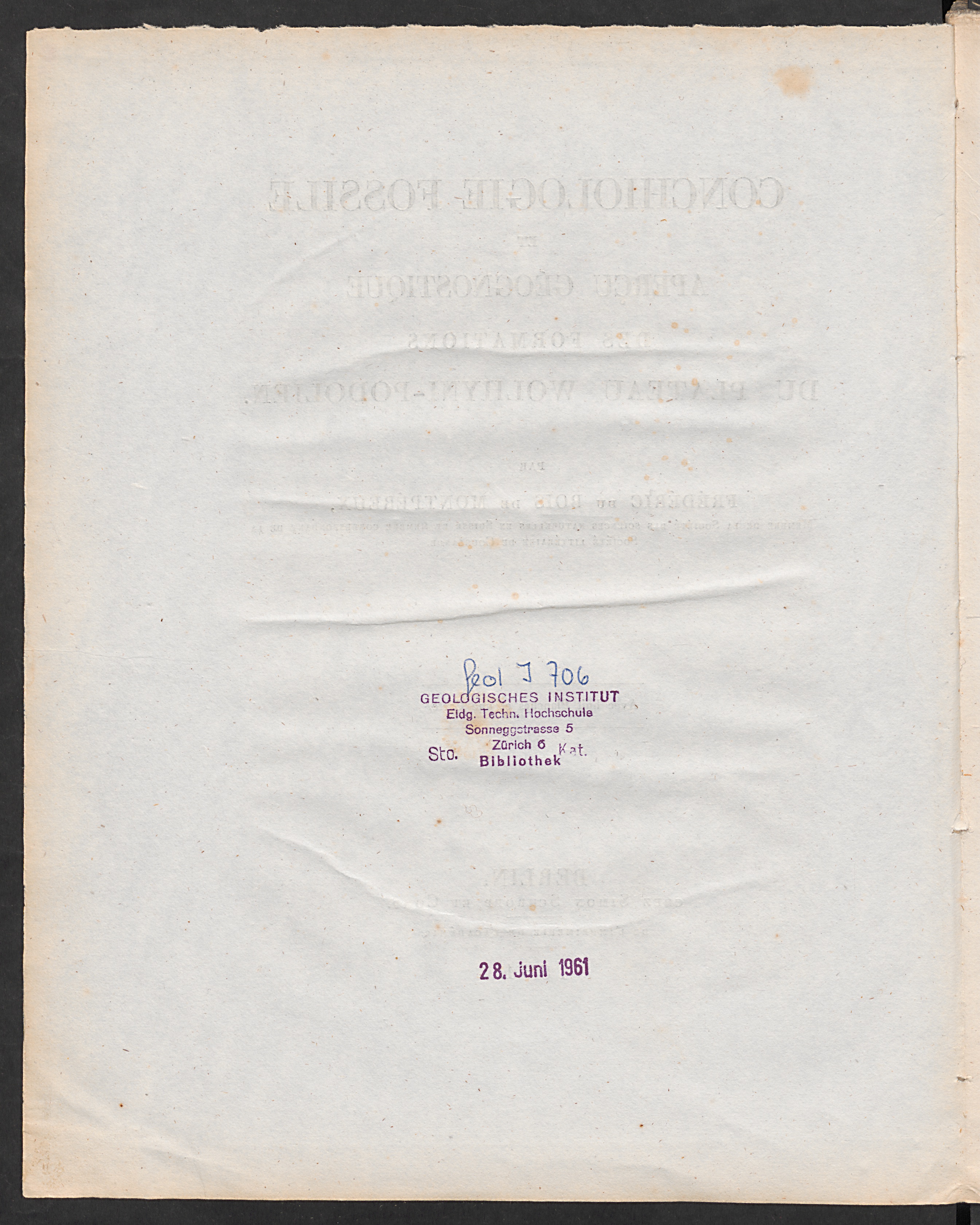 Conchiologie fossile et aperçu géognostique des formations du plateau Wolhyni-Podolien : avec huit planches et une carte / par Frédéric du Bois de Montpéreux