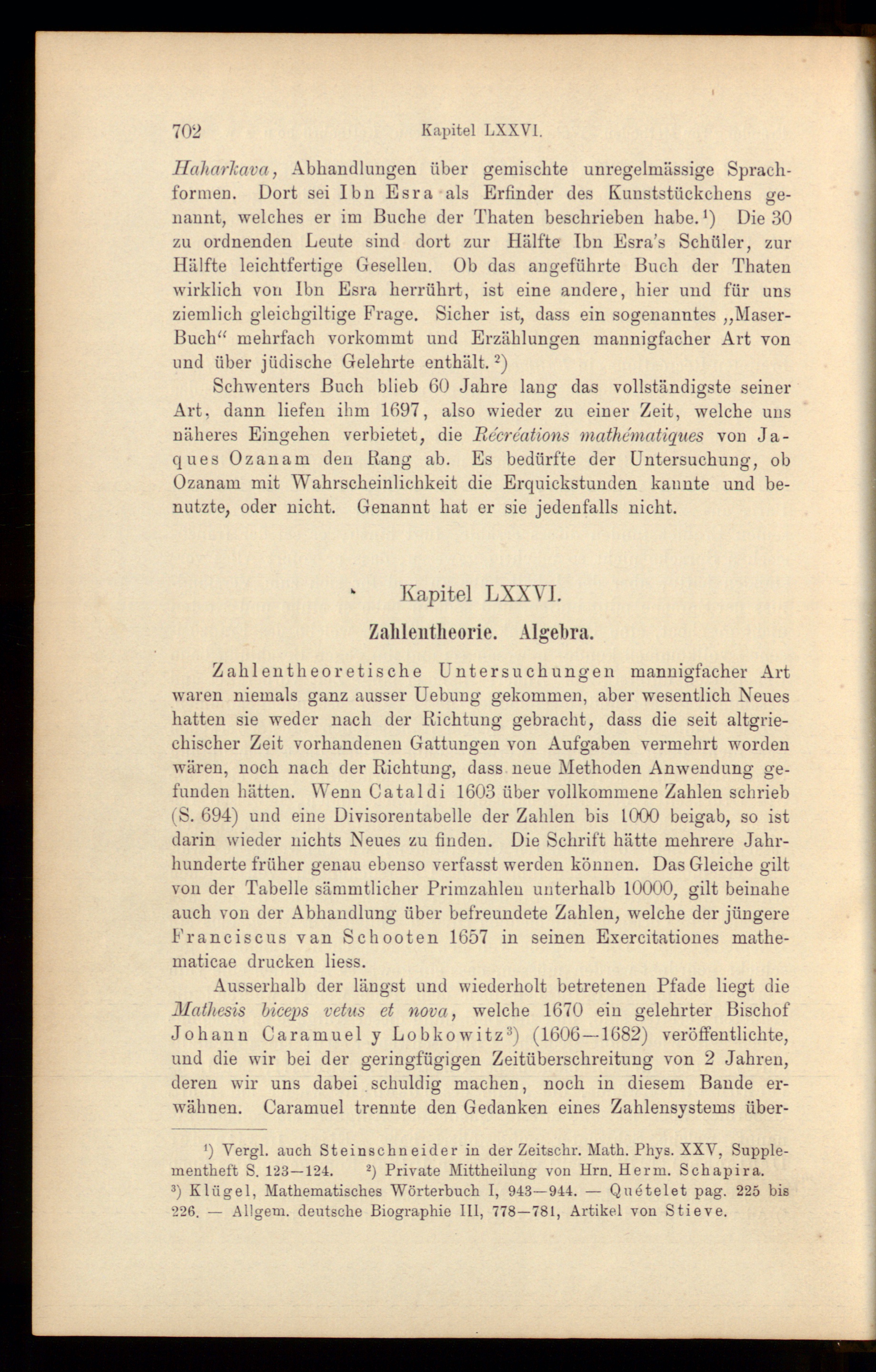 Kapitel LXXVI. Zahlentheorie. Algebra.