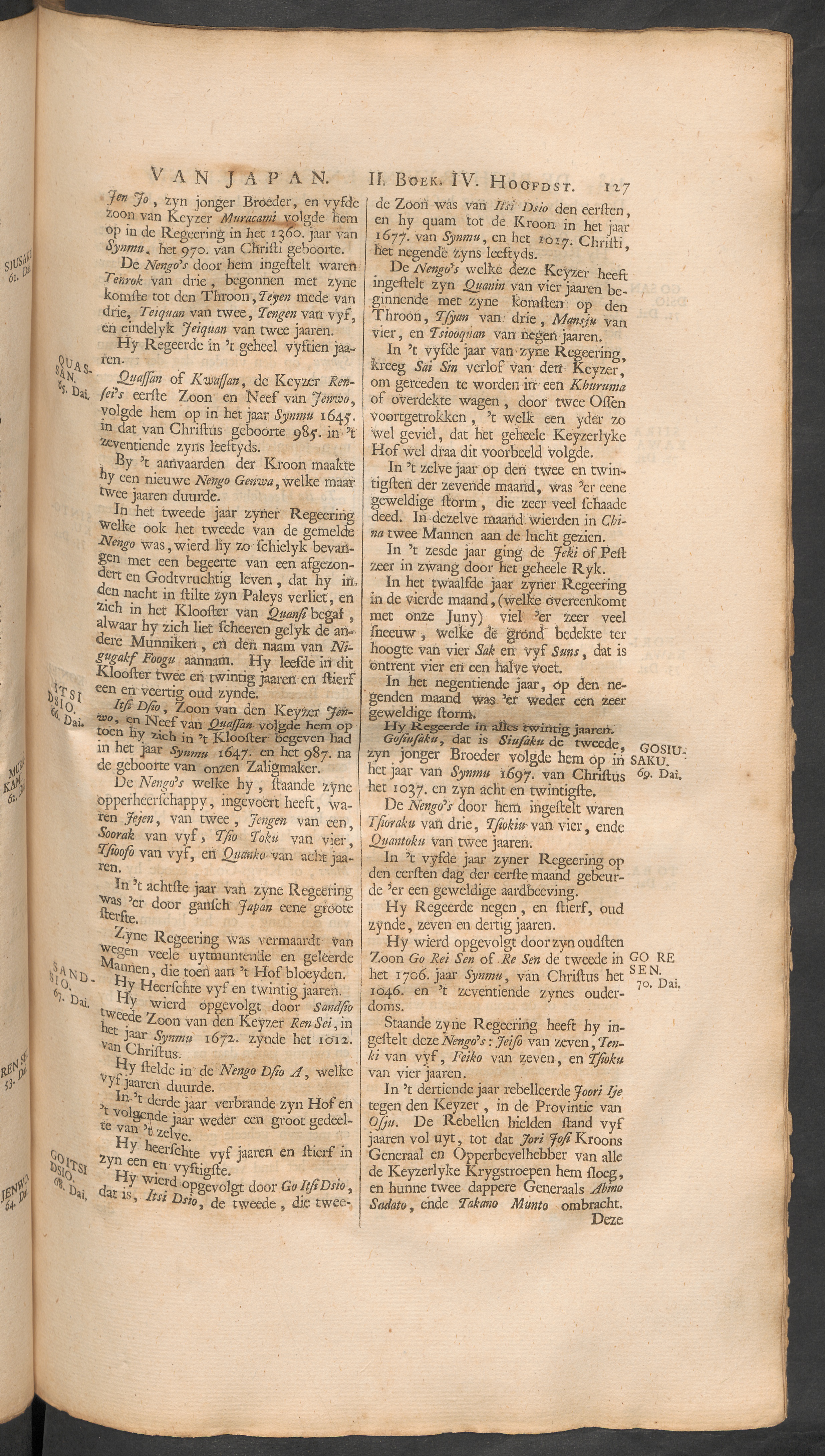 De beschryving van Japan : behelsende een verhaal van den ouden en tegenwoordigen Staat en Regeering van dat Ryk, van deszelfs tempels, paleysen, kasteelen en andere gebouwen; van deszelfs metalen, mineralen, boomen, planten, dieren, vogelen en visschen. Van de Tydrekening, en Opvolging van de Geestelyke en Wereldlyke Keyzers. Van de oorfpronkelyke afstamming, Godsdiensten, gewoonten en handwerkselen der inboorlingen, en van hunnen koophandel met de Nederlanders en de Chineesen. Benevens eene beschryving van het Koningryk Siam / In 't Hoogduytsch beschreven door Engelbert Kæmpfer, ... ; in het Engelsch overgezet, door J.G. Scheuchzer ... ; Voorzien met kunstige kopere platen, onder het opzicht van den ridder Hans Sloane uytgegeven