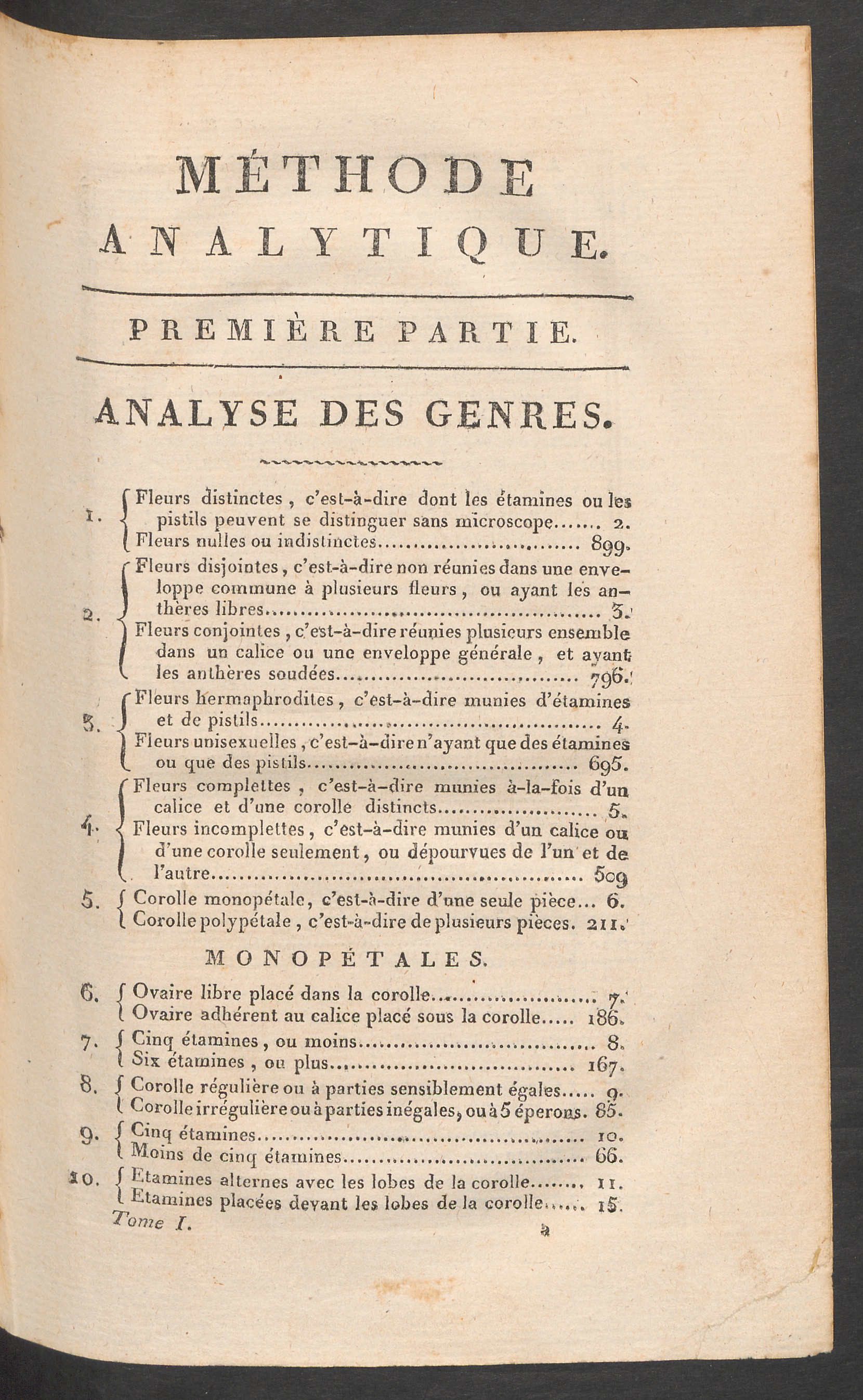 Première partie. Analyse des genres.