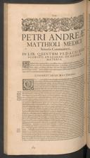 Petri Andreae Matthioli ... Opera quae extant omnia, hoc est, commentarii in VI. libros Pedacii Dioscoridis Anazarbei de medica materia, adjectis in margine variis graeci textus lectionibus ... qui Dioscoridis depravatam lectionem restituunt: a Casparo Bauhino ... Post diversarum editionum collationem infinitis locis aucti: Synonymiis quoque plantarum et notis illustrati: Adiectis plantarum iconibus ... De ratione distillandi aquas ex omnibus plantis ... item apologia in Amatum Lusitanum ... Epistolarum medicinalium ... Dialogus de morbo Gallico ...