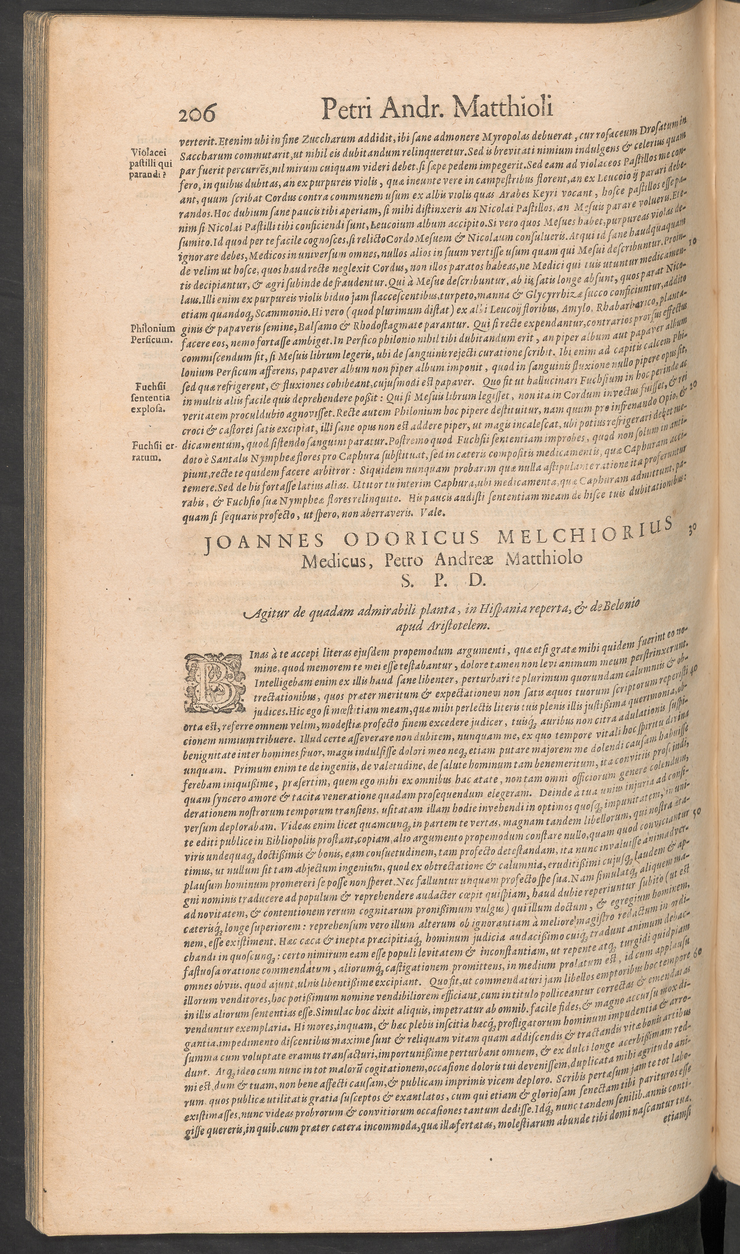 Petri Andreae Matthioli ... Opera quae extant omnia, hoc est, commentarii in VI. libros Pedacii Dioscoridis Anazarbei de medica materia, adjectis in margine variis graeci textus lectionibus ... qui Dioscoridis depravatam lectionem restituunt: a Casparo Bauhino ... Post diversarum editionum collationem infinitis locis aucti: Synonymiis quoque plantarum et notis illustrati: Adiectis plantarum iconibus ... De ratione distillandi aquas ex omnibus plantis ... item apologia in Amatum Lusitanum ... Epistolarum medicinalium ... Dialogus de morbo Gallico ...