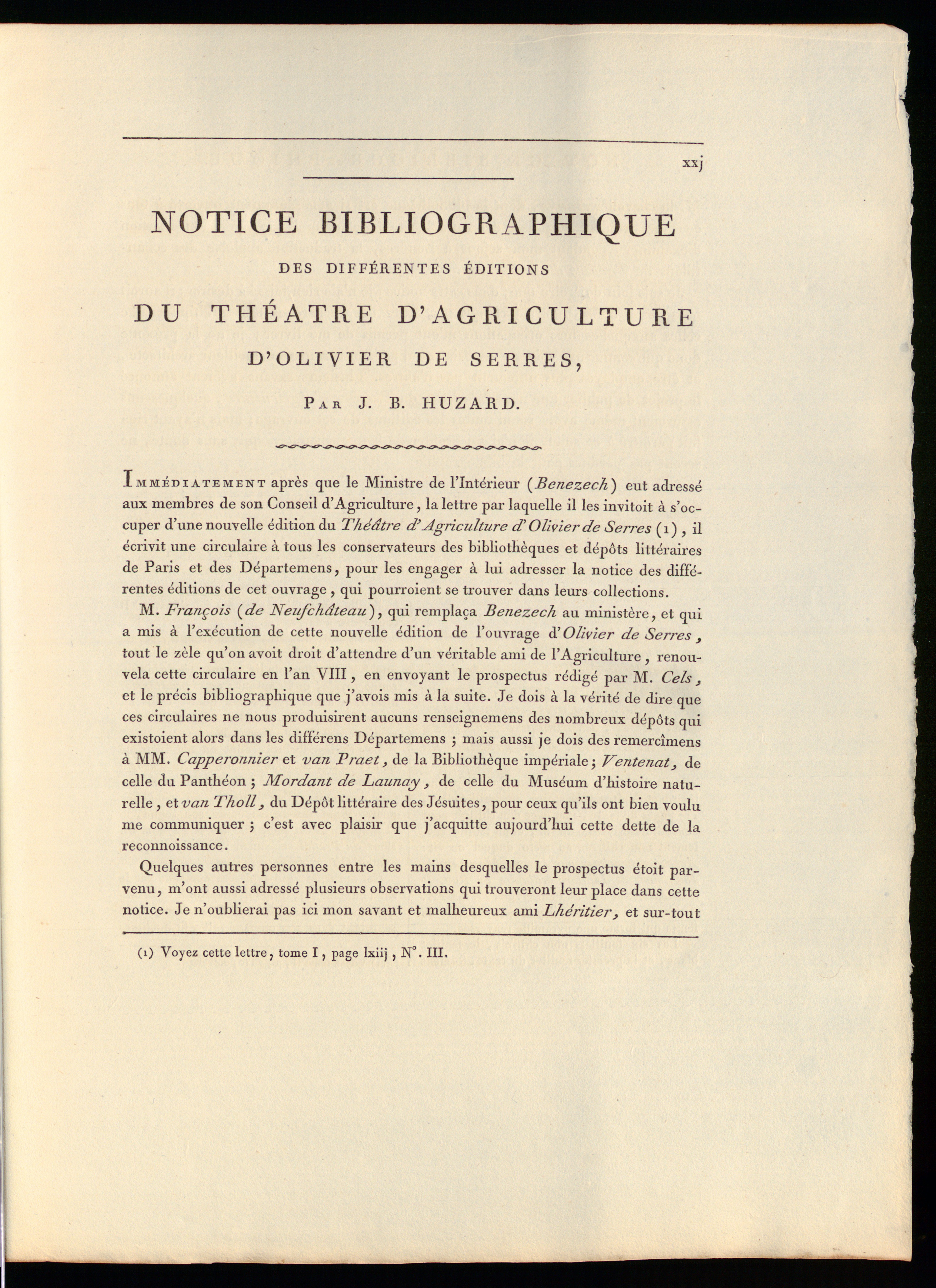 Notice bibliographique des différentes éditions du théatre d'agriculture d'Olivier[...]