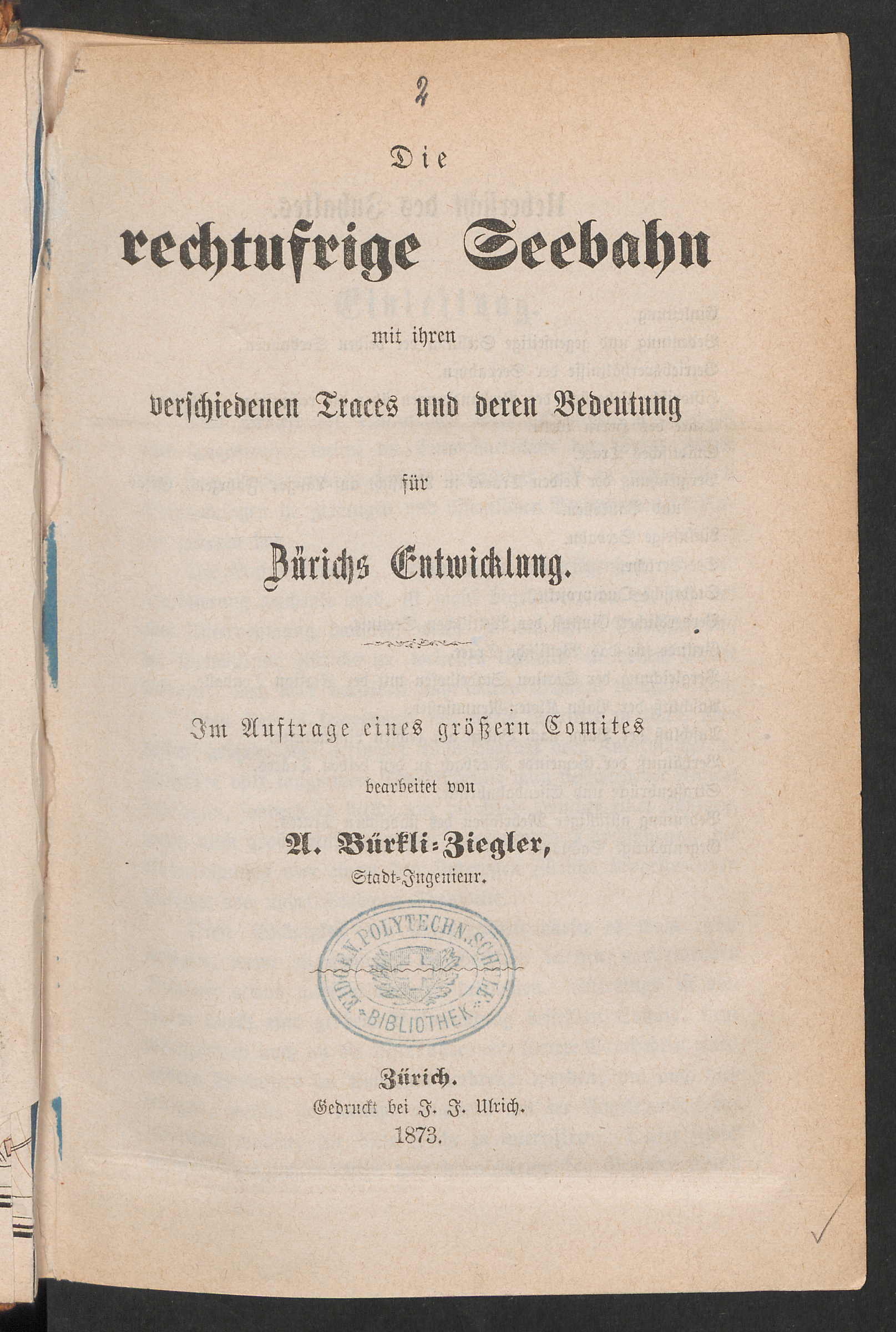 Die rechtufrige Seebahn mit ihren verschiedenen Traces und deren Bedeutung für Zürichs Entwicklung / bearbeitet von A. Bürkli-Ziegler