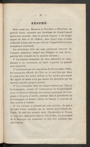 Rapport du Conseil d'Etat au Grand-Conseil sur l'exécution des décrets relatifs à la participation de l'état dans l'entreprise du chemin de fer par le Jura industriel
