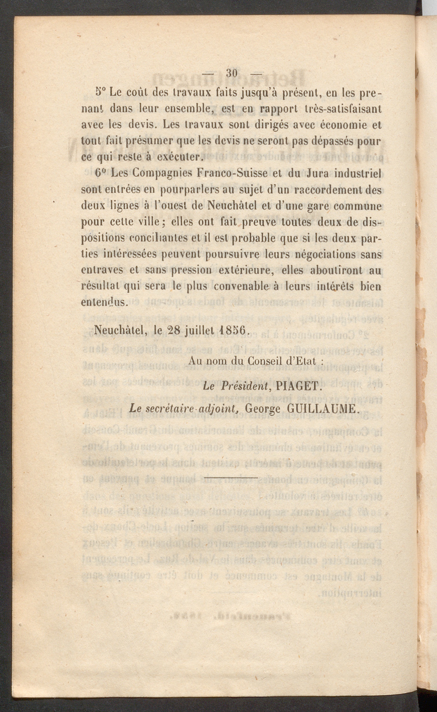 Rapport du Conseil d'Etat au Grand-Conseil sur l'exécution des décrets relatifs à la participation de l'état dans l'entreprise du chemin de fer par le Jura industriel