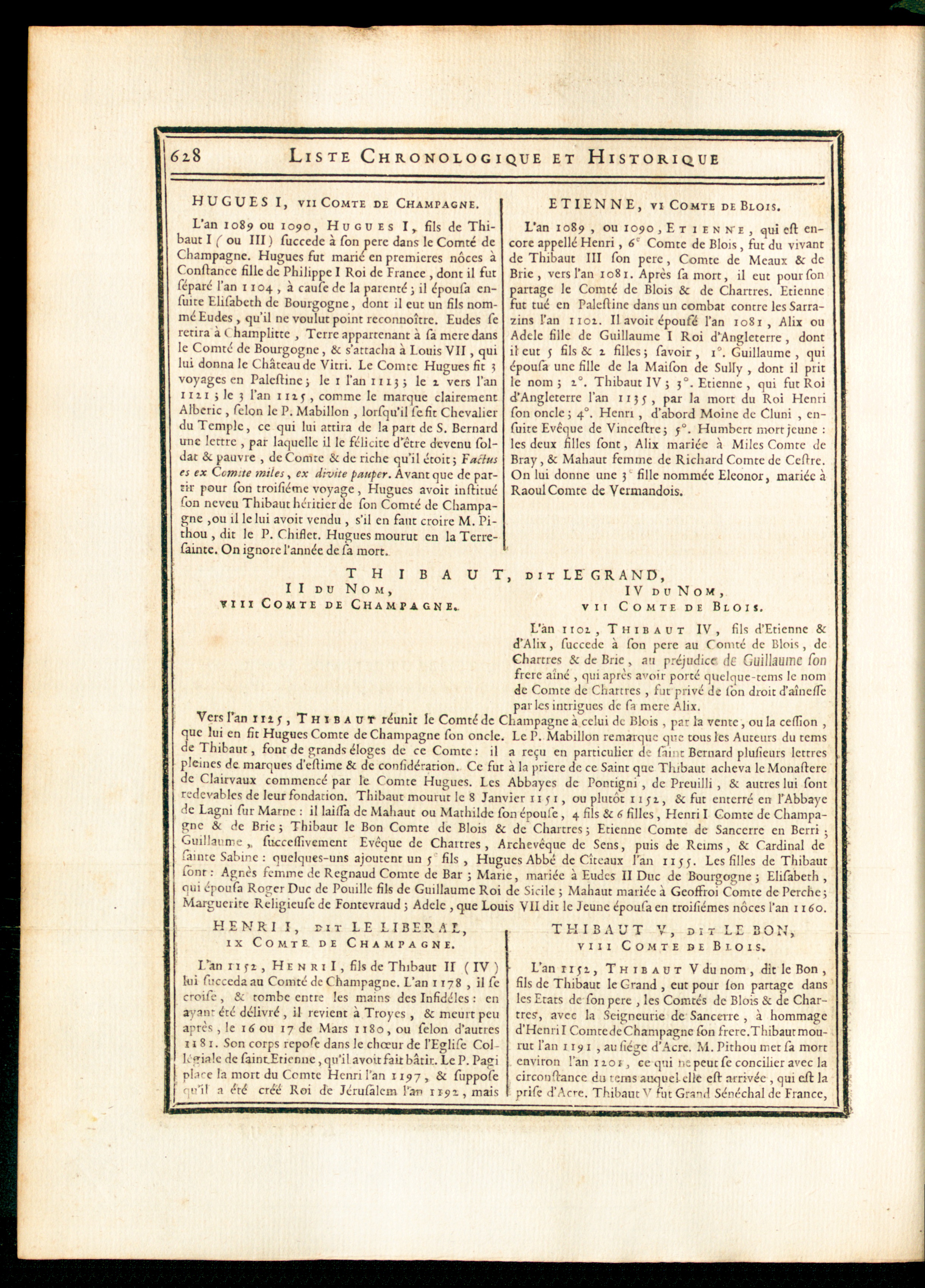 Liste chronologique et historique des comtes de Champagne et de Blois.