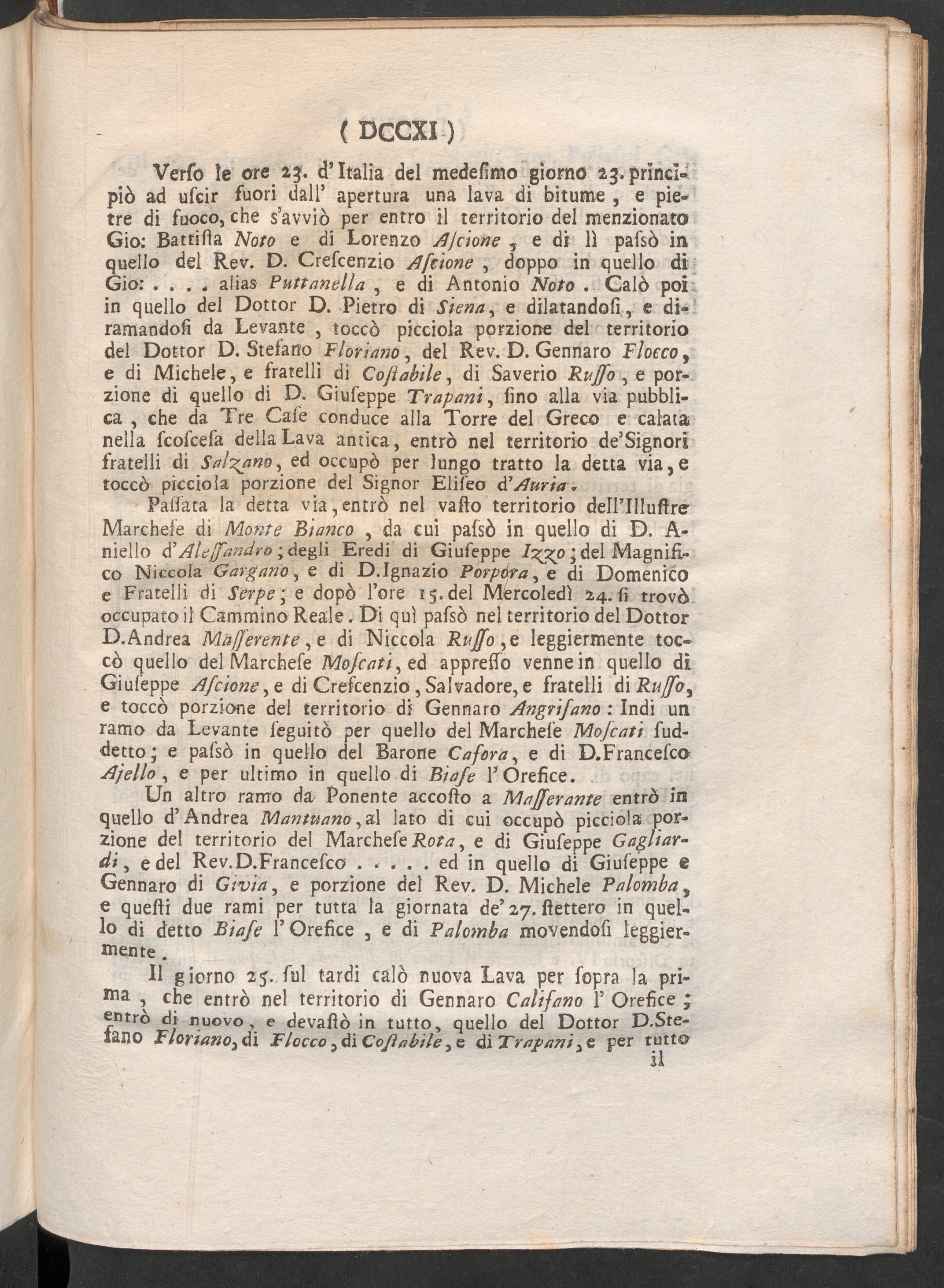 Racconto storico-filosofico del Vesuvio e particolarmente di quanto è occorso in quest' ultima eruzione principiata il dì 25 ottobre 1751 e cessata il dì 25 febbraio 1752 al luogo detto l' Atrio del Cavallo ... / Giuseppe Maria Mecatti