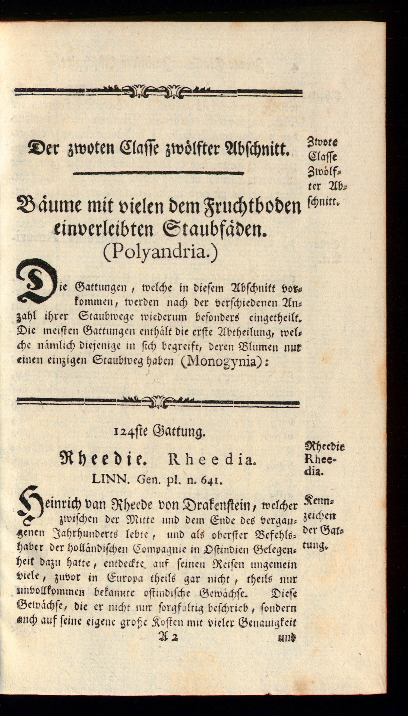 Der zwoten Classe zwölfter Abschnitt. Bäume mit vielen dem Fruchtboden einverleibten Staubfäden.