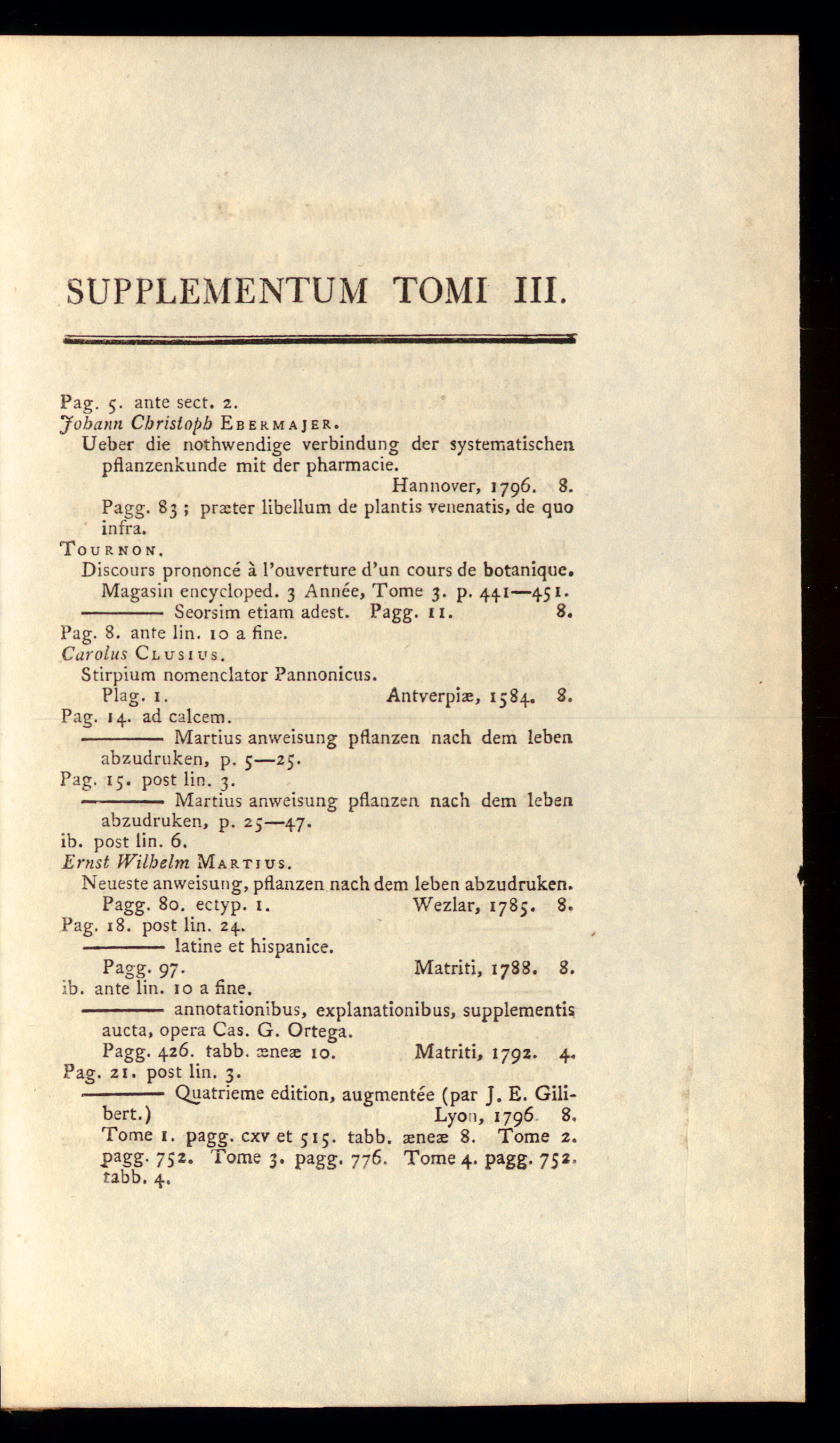 5 (1800) Supplementum [catalogi bibliothecae historico-naturalis Iosephi Banks] et index auctorum / auctore Iona Dryander