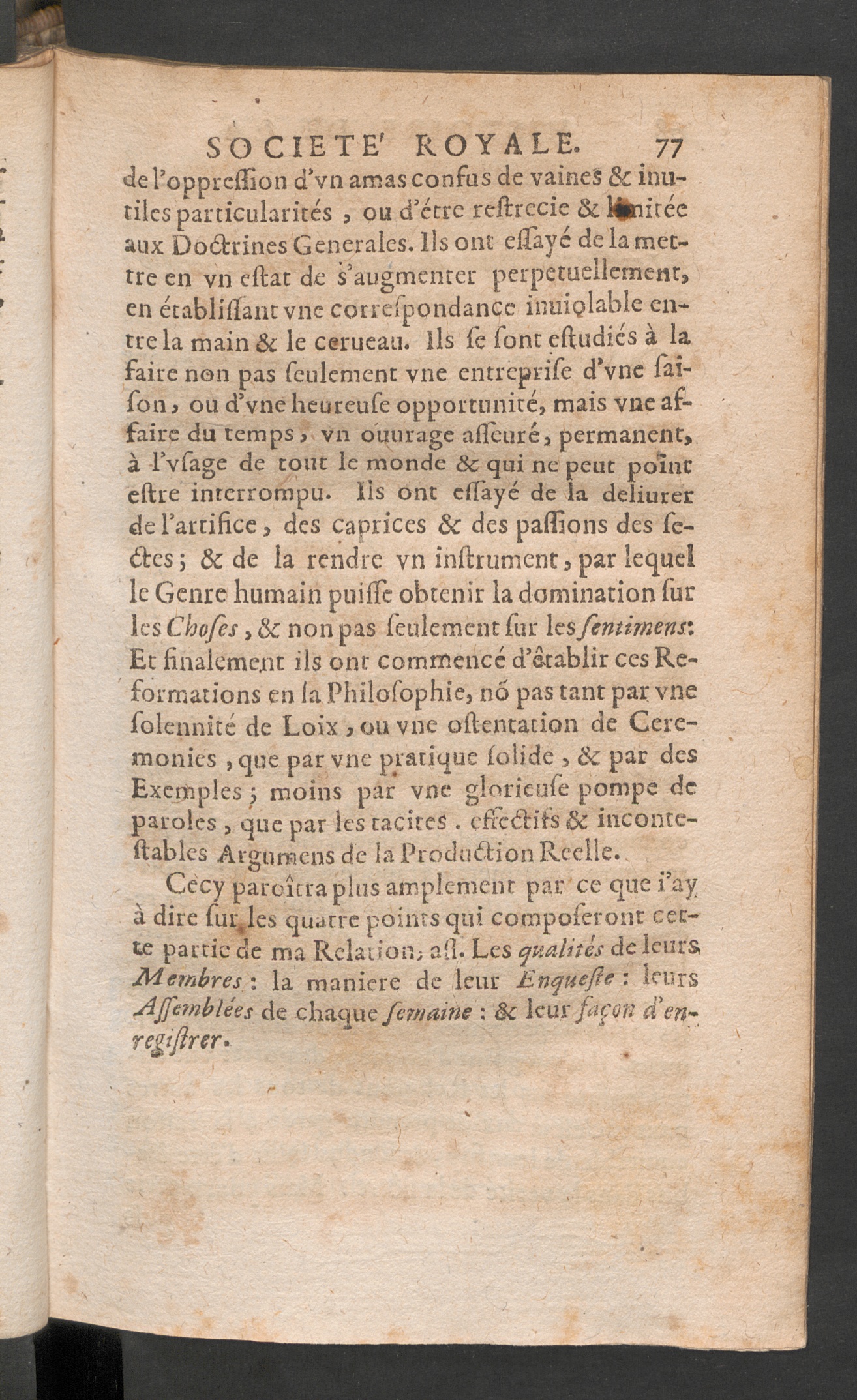 L' histoire de la Societé Royale de Londres, establie pour l'enrichissement de la science naturelle / escrite en anglois par Thomas Sprat