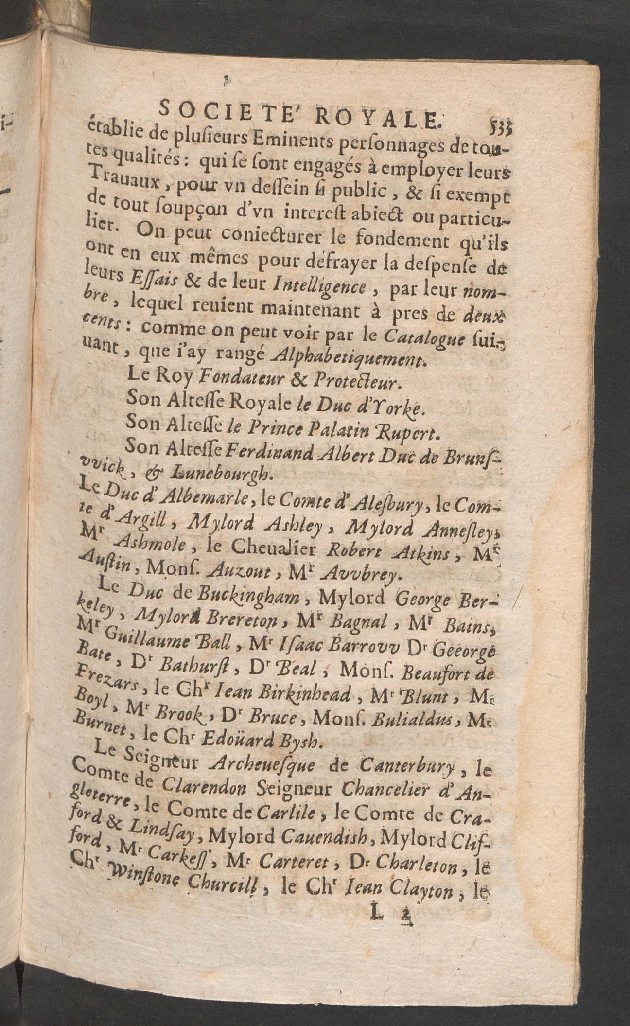 L' histoire de la Societé Royale de Londres, establie pour l'enrichissement de la science naturelle / escrite en anglois par Thomas Sprat