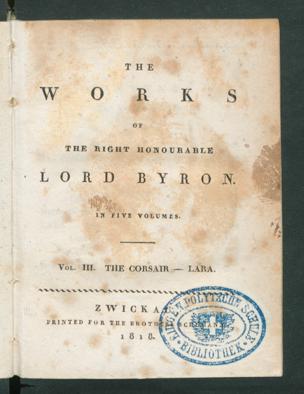 3-4 (1818) The corsair : ; Lara ; Ode to Napoleon Buonaparte ; Poems ; Hebrew melodies / George Gordon Byron