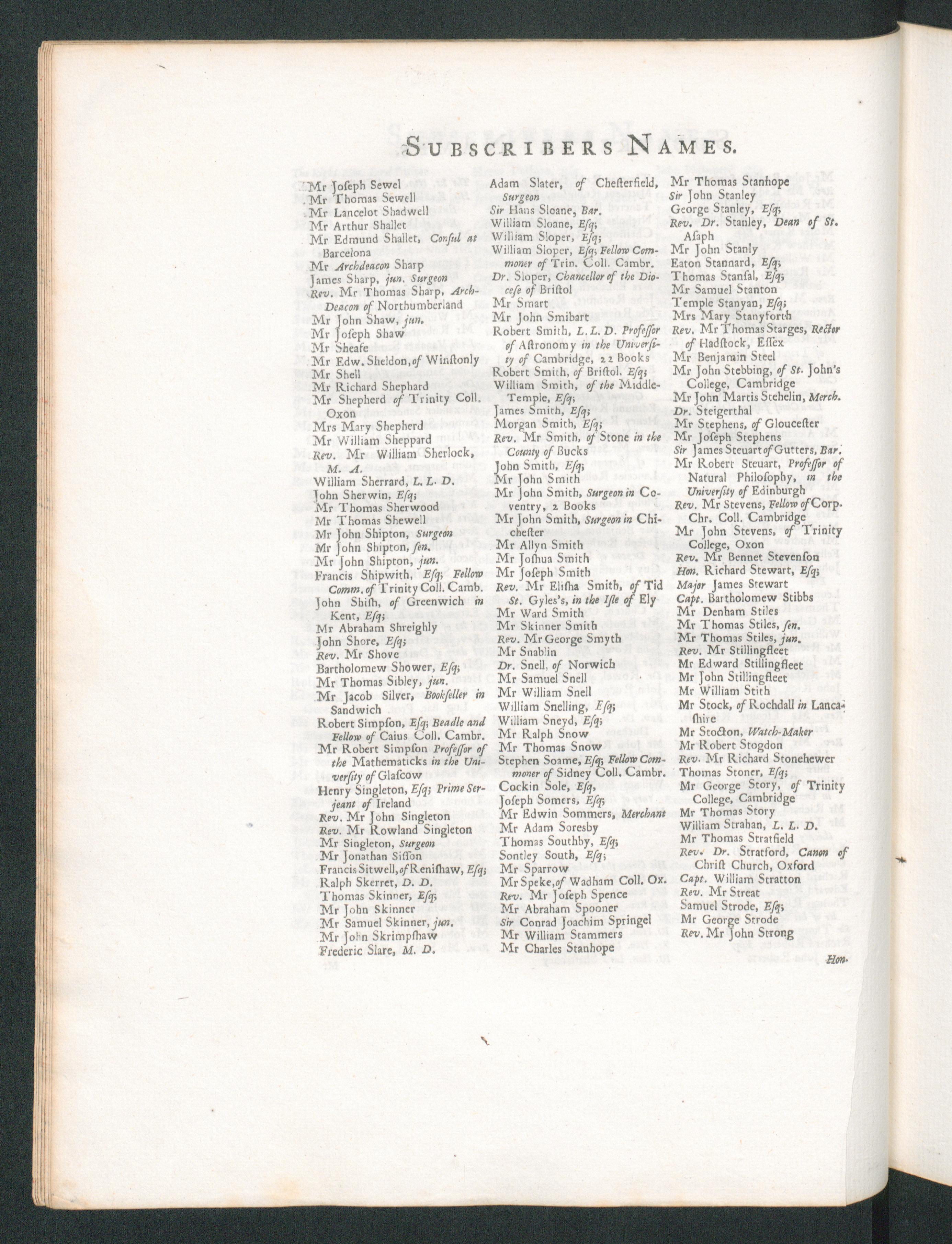 A list of such of the subscribers names as are come to the hand of the author.