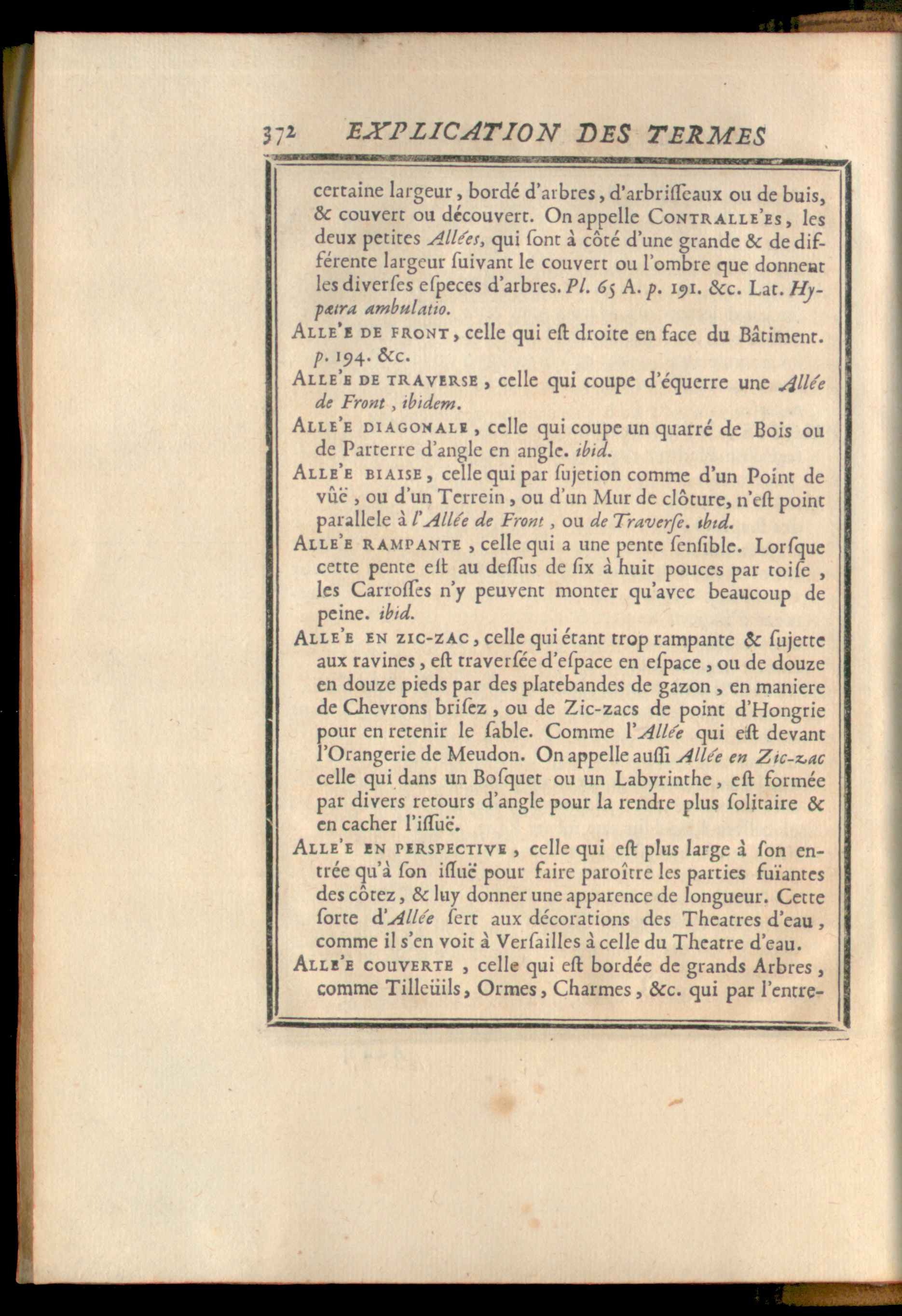 2 (1710) Explication des termes d'architecture : qui comprend l'architecture, les mathematiques, la geometrie, la mécanique; l'hydraulique, le dessein, la peinture, la sculpture ..., la maçonnerie, la coupe, et l'appareil des pierres ..., la vitrerie, la plomberie ..., le jardinage, & c., la distribution, la decoration, la matiere & la construction des edifices ... : les bastimens, antiques, sacrez, profanes ... : ensemble les etimologies, & les noms latins des termes, avec des exemples & des preceptes: le tout par raport à l'art de bâtir : suite du Cours d'architecture : aussi: Dictionnaire d'architecture / Augustin- Charles Daviler ...