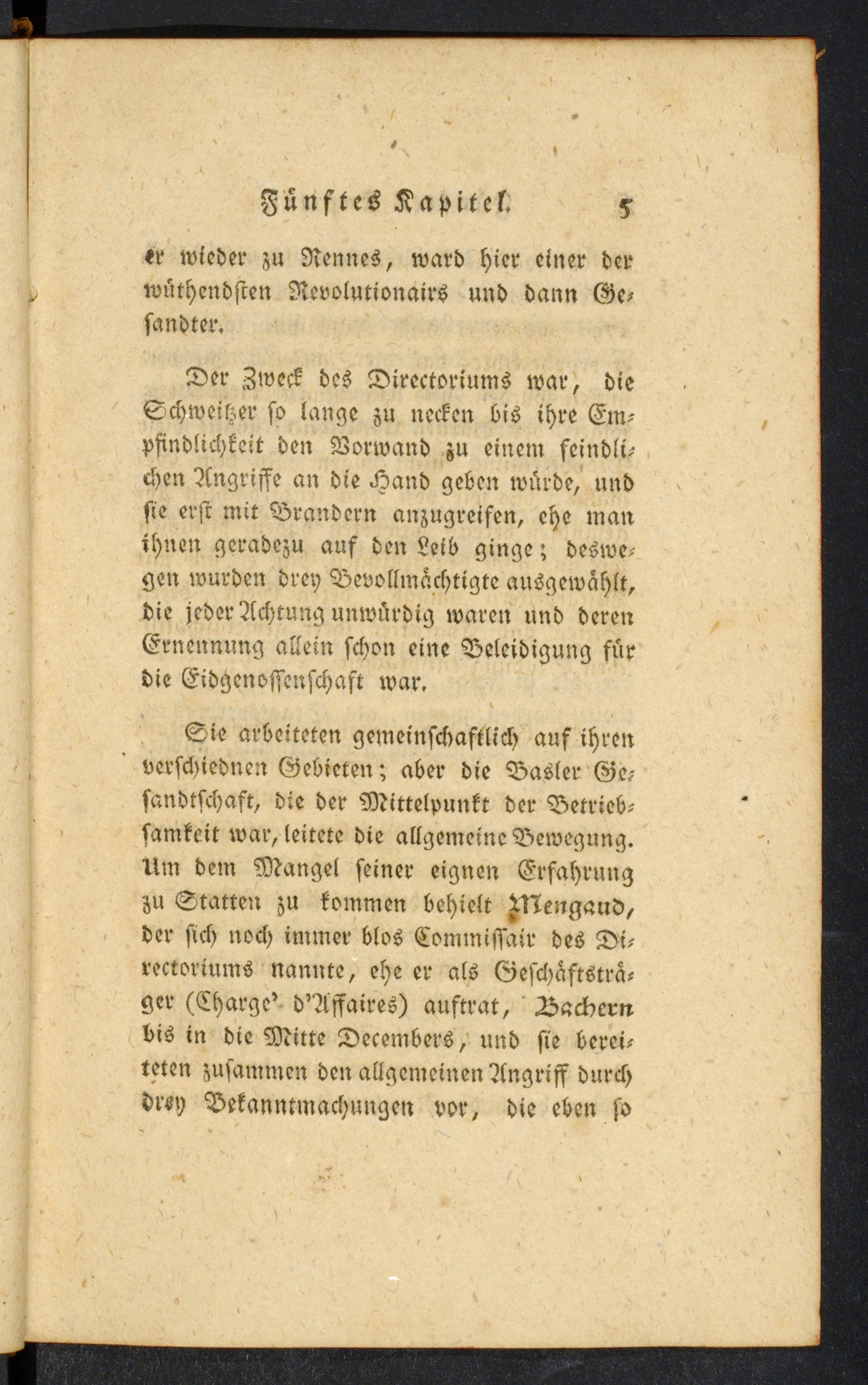 Fünftes Kapitel. Charakter der französischen Minister in der Schweiz zu Ende des Jahres 1797. - Besetzung des Erguels; (oder Sanct Immerthals.) - Denkart und Aufführung der helvetischen Staatskörper in diesem Zeitraum. - Zustand des Waatlandes.