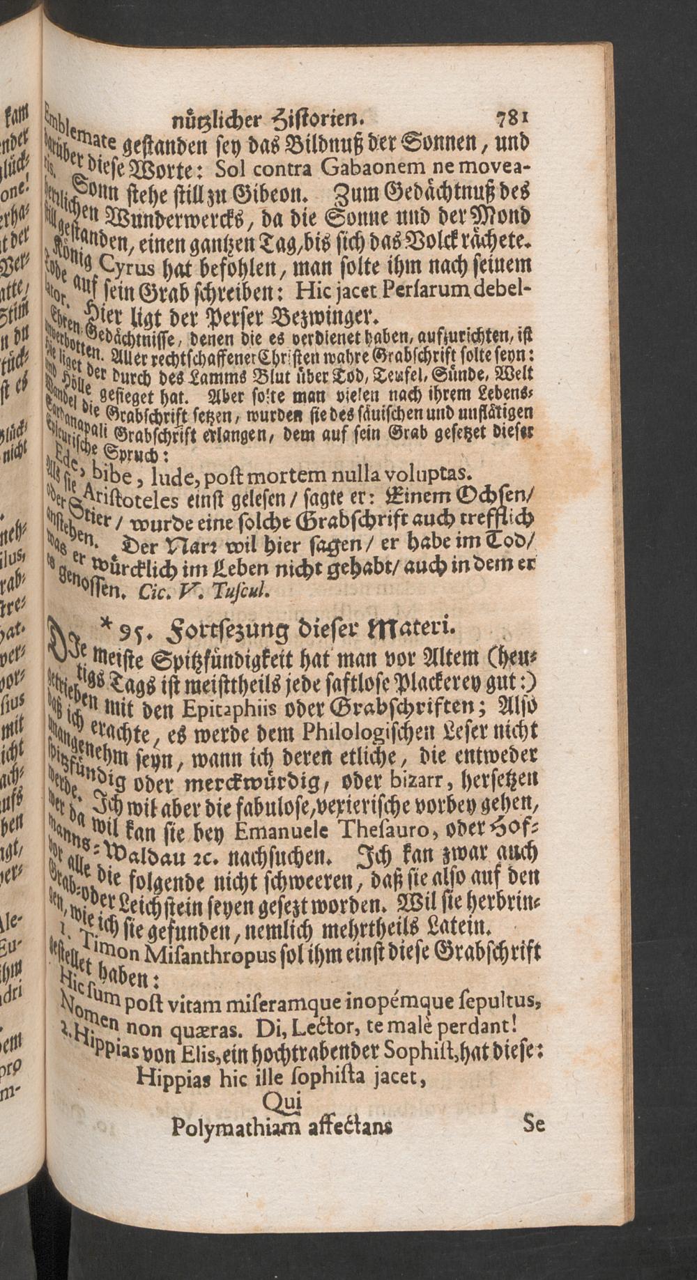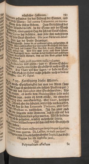 Acerra philologica nova, repurgata, aucta, das ist, DCC merckwürdige Historien und Discursen : theils aus den vorigen Editionen ... theils aber von neuem ... aus den besten Scribenten hinzugefüget, und also eingerichtet, dass solche den Liebhaberen der Gelehrsamkeit, des Alterthums, der Mythologie, der Geschichten, der Sittenlehr, und vielerhand Discurs-Materien, so wol ergetzlich, als erbaulich seyn können / [Peter Lauremberg] ; Nebend-Stunden G. Heideggers