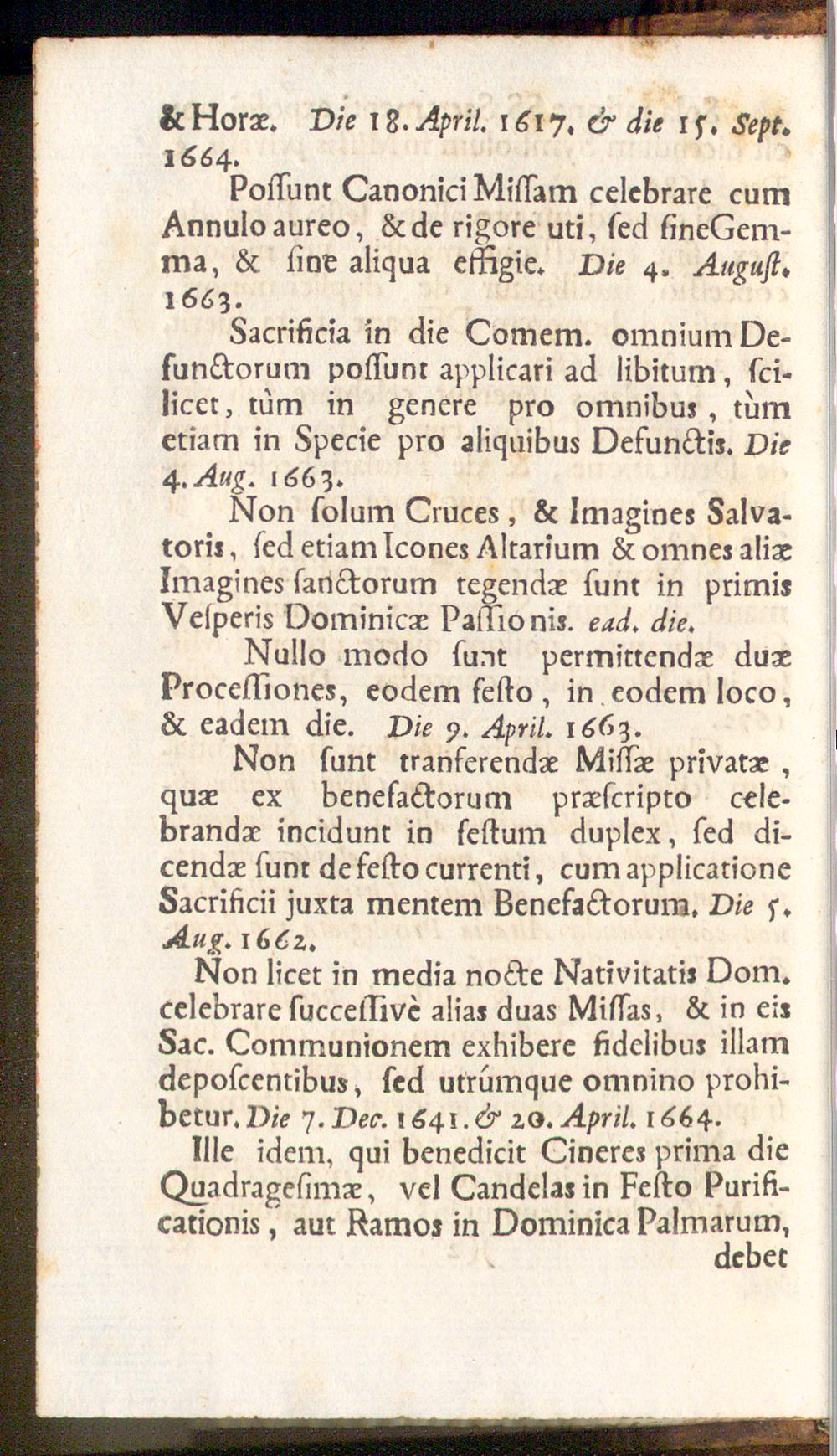 Possunt Canonici Missam celebrare cumAnnuloaureo, &de rigore uti, sed sineGem-ma, & sine aliqua effigie* Die 4. August,1663.