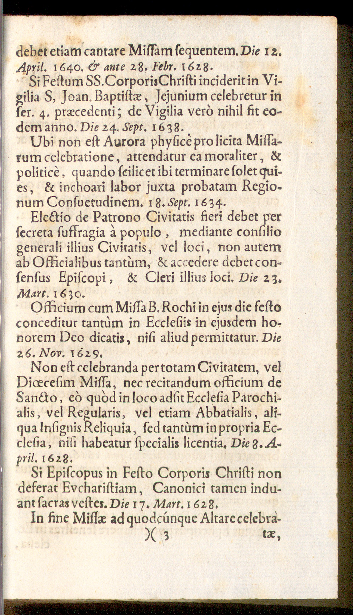 Ubi non est Aurora physice pro licita Missa-rum celebratione, attendatur ea moraliter, &politice, quando scilicet ibi terminare solet qui-es, & inchoari labor juxta probatam Regio-num Consuetudinem. 18 .Sept. 1634 .