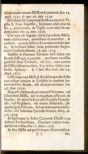 I Si Episcopus in Festo Corporis Christi nondeferat Evcharistiam, Canonici tamen indu-ant sacras vestes. Die x 7. Mart. 1628.