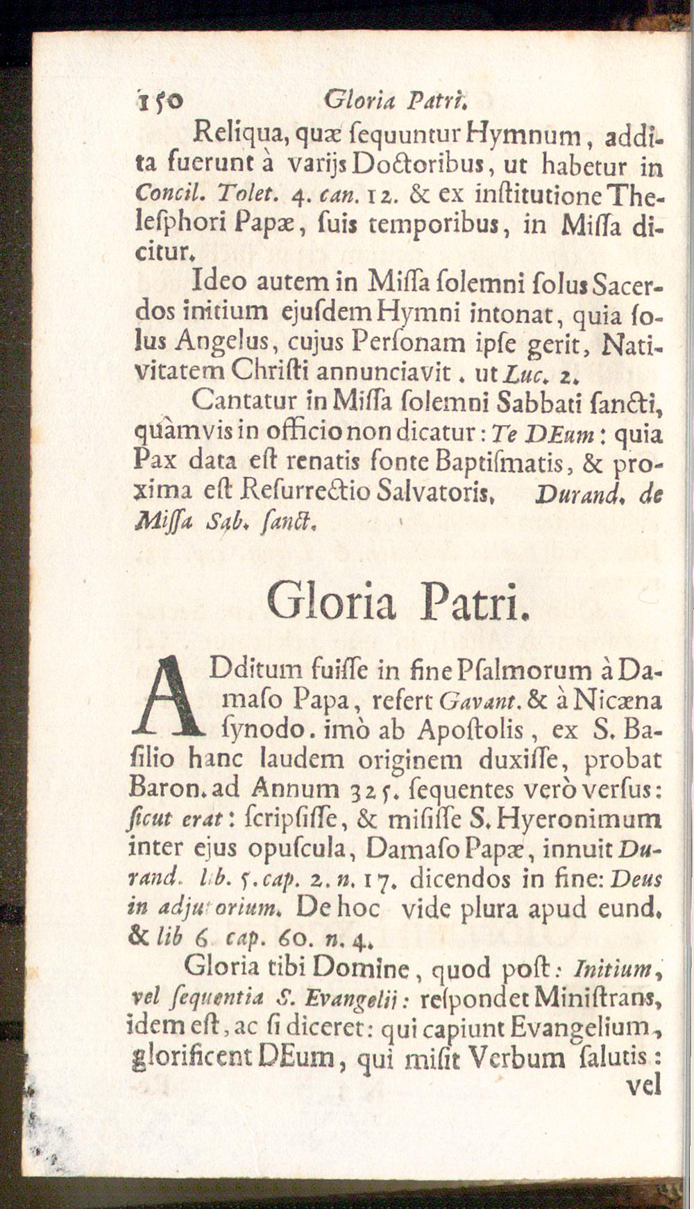 A Oditum fuisse in fine Psalmorum aOa-maso Papa, refert Gavant. & ä Nicaenasynodo. imö ab Apostolis, ex S. Ba-silio hanc laudem originem duxisse, probatBaron, ad Annum zrs. sequentes vero versus:sicut erat: scripsisse, & misisse S.Hyeronimuminter ejus opuscula, DamasoPapae, innuitD«-rand. l b. f.cap. z.n, 17. dicendos in fin e: Deusin adjworium. De hoc vide plura apud eund,& lib 6 cap. 60. n. 4.