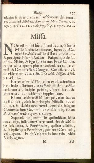 N On est nostri hic instituti de amplissimoMissae sacrificio diferere, super quoCa»nonistae, &Moralistae diffuse scripserunt,& praecipue insignis Auctor Pasqualigo de sa-crific. Missae, &Ego ipse in mea Praxi Canon,nuper edita quam plures partieu ares casus re-tuli , 8t Decretis Sac, Congreg. Concil, resolvi,ut videre est. Tom, iJit.C.de celeb, Mijsar . afot,