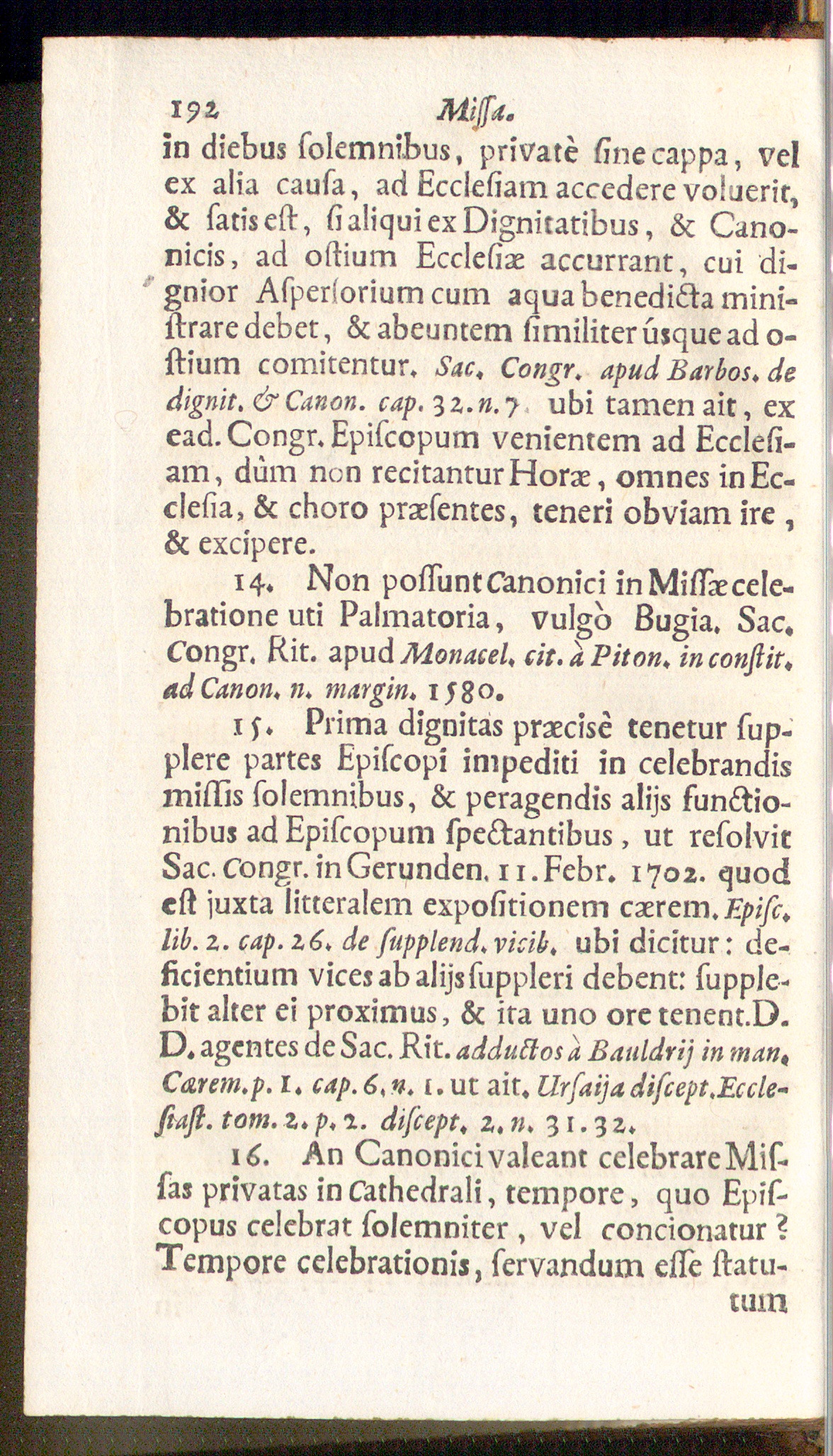 14. Non possunt Canonici in Missae cele-bratione uti Palmatoria, vulgo Eugia. Sac,Congr. Rit. apud Monacel, cit.aPiton, inconfiit,ad Canon, n, margin, ijFo.