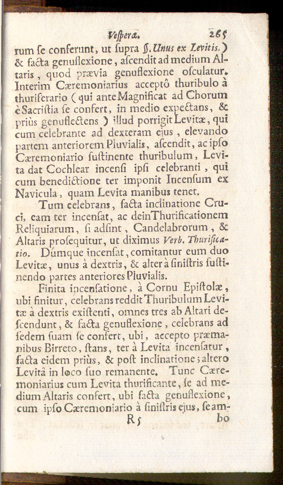 Finita iqcenfatione, a Cornu Epistolae,ubi finitur, celebrans reddit Thuribulum Levi-ta: ä dextris existent: , omnes tres ab Altari de-scendunt , & facta genuflexione , celebrans adsedem suam sc confert, ubi, accepto prae ma-nibus Birreto, stans, ter a Levita incenfatur,facta eidem priiis, & post inclinatione> alteroLevita in l©co suo remanente. Tunc Caere-moniarius cum Levita thurificante, fe ad me-dium Altaris confert, ubi facta genuflexione,cum ipso Caeremoniario a sinistris ejus, scam-