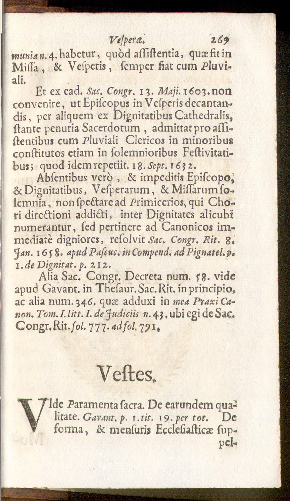 Et ex ead. Sac. Congr. 15. Maji, r 603,nonconvenire, ut Episcopus in Vesperis decantan-dis, per aliquem ex Dignitatibus Cathedralis,stante penuria Sacerdotum , admittat pro assi-stentibus cum Pluviali Clericos in minoribusconstitutos etiam in solemnioribus Festivitati-bus; quod idem repetiit, i%.Sept. 16)2.