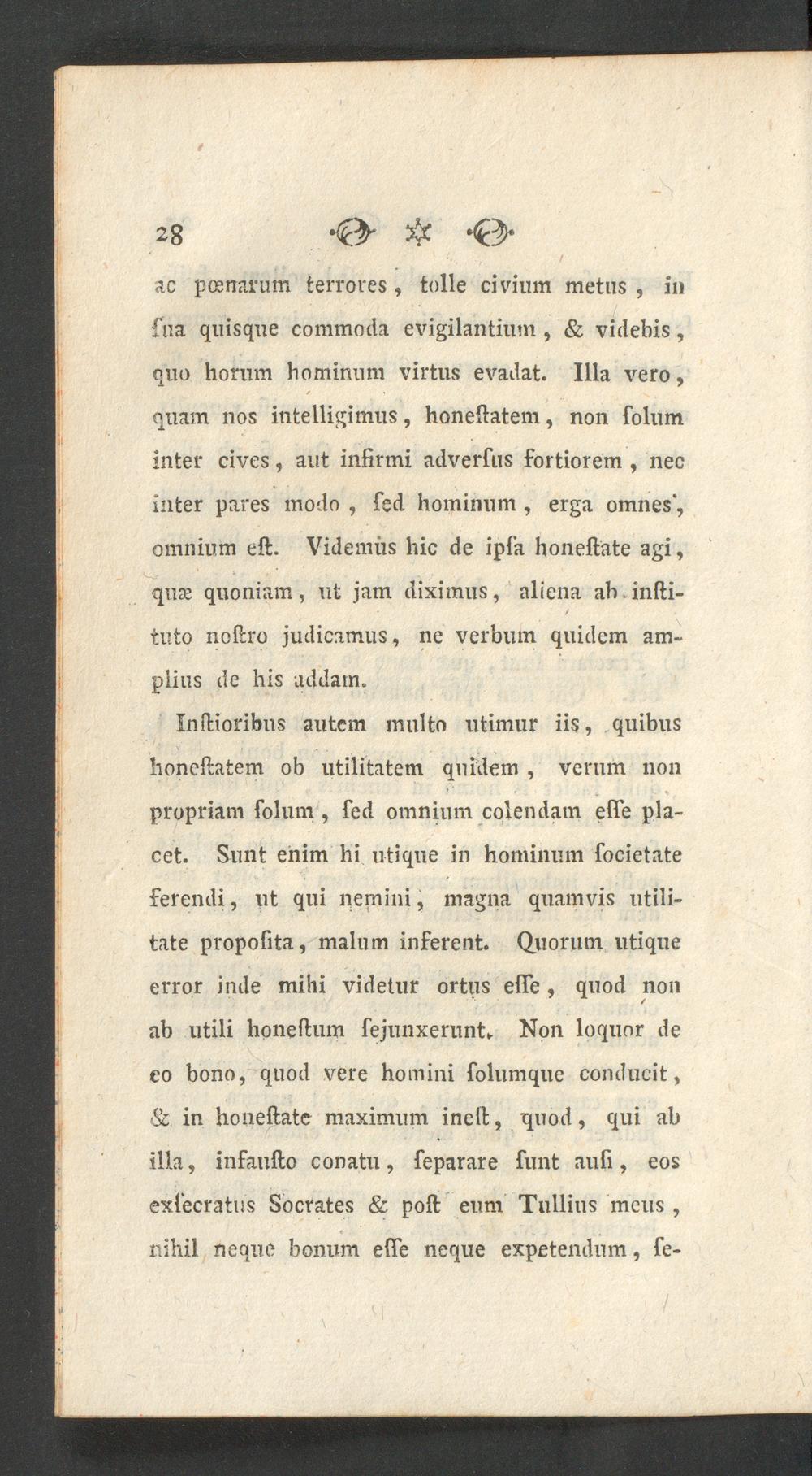 Inftioribns autem multo utimur iis, quibushoneftatem oh utilitatem quidem , verum nonpropriam folum , fed omnium colendam efie pla-cet. Sunt enim hi utique in hominum focietateferendi, ut qui nemini, magna quamvis utili-tate propolita, malum inferent. Quorum utiqueerror inde mihi videtur ortus efie, quod nonab utili honefium fejunxerunt. Non loquor deeo bono, quod vere homini folumque conducit,& in honeftate maximum ineft, quod, qui abilla, infaufto conatu, feparare funt aufi, eosexfecratus Socrates & poft eum Tullius meus ,nihil neque bonum efie neque expetendum, fe-