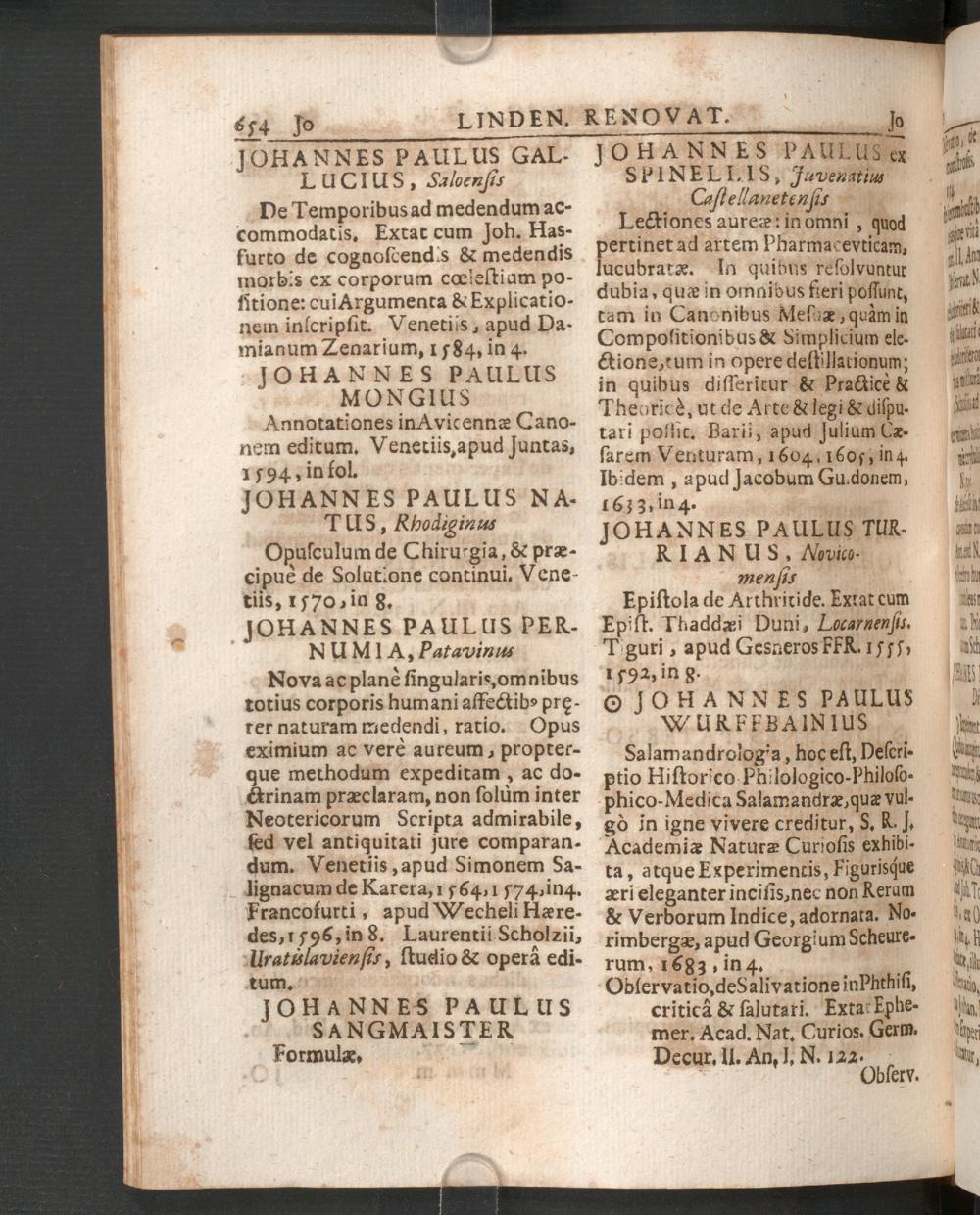 Lindenius renovatus sive Johannis Antonidæ Van der Linden de scriptis medicis libri duo : quorum prior, omnium tam veterum, quam recentiorum ... scriptorum medicorum ... catalogum continet ... posterior vero Cynosuram medicam ... continuati / à Georgio Abrahamo Mercklino, D.