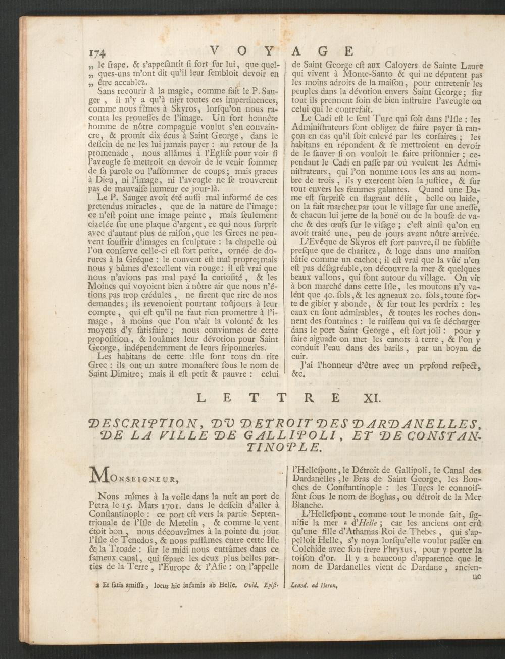 Relation D'Un Voyage Du Levant, Fait Par Ordre du Roi : Contenant L'Histoire Ancienne & Moderne de plusieurs Isles de l'Archipel, de Constantinople, des Côtes de la Mer Noire, de l'Arménie, de la Géorgie, des Frontières de Perse & de l'Asie Mineure / Par M. Pitton de Tournefort : Avec Les Plans des Villes & des Lieux considerables; le Genie, les Meurs, le Commerce & la Religion des differens Peuples qui les habitent; Et l'Explication des Médailles & des Monument Antiques. : Enrichie de Descriptions & de Figures d'un grand nombre de Plantes rares, de divers Animaux; Et de plusieurs Observations touchant l'Histoire Naturelle