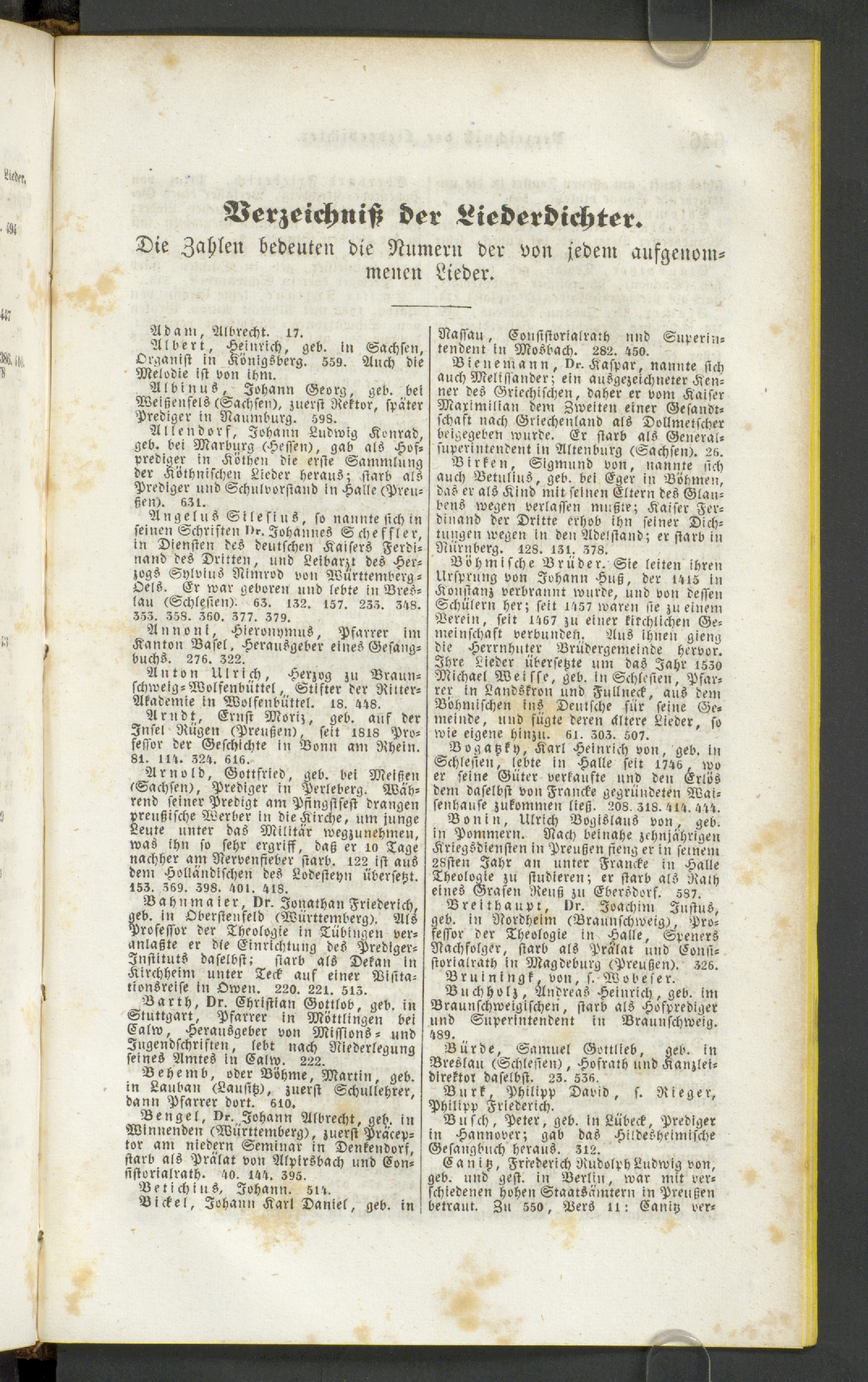 Verzeichniss der Liederdichter.